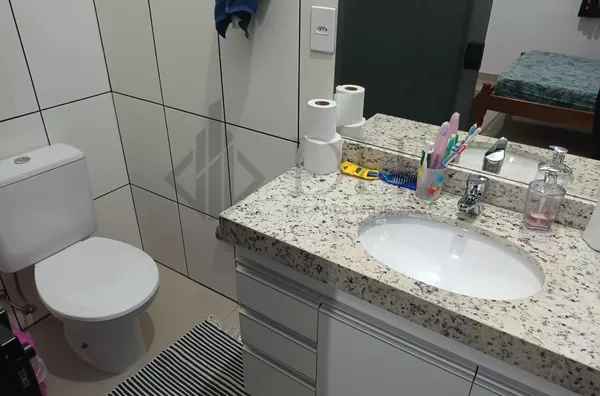 São 6 banheiros e 4 quartos com armários planejados, incluindo 2 suítes, sendo a suíte master com closet e ar condicionado. Todo o imóvel é revestido com piso frio porcelanato e conta com sistema de segurança completo, incluindo 16 câmeras, alarmes internos e externos, cerca elétrica e concertina, tudo da marca Intelbras, com monitoramento 24 horas via celular.
