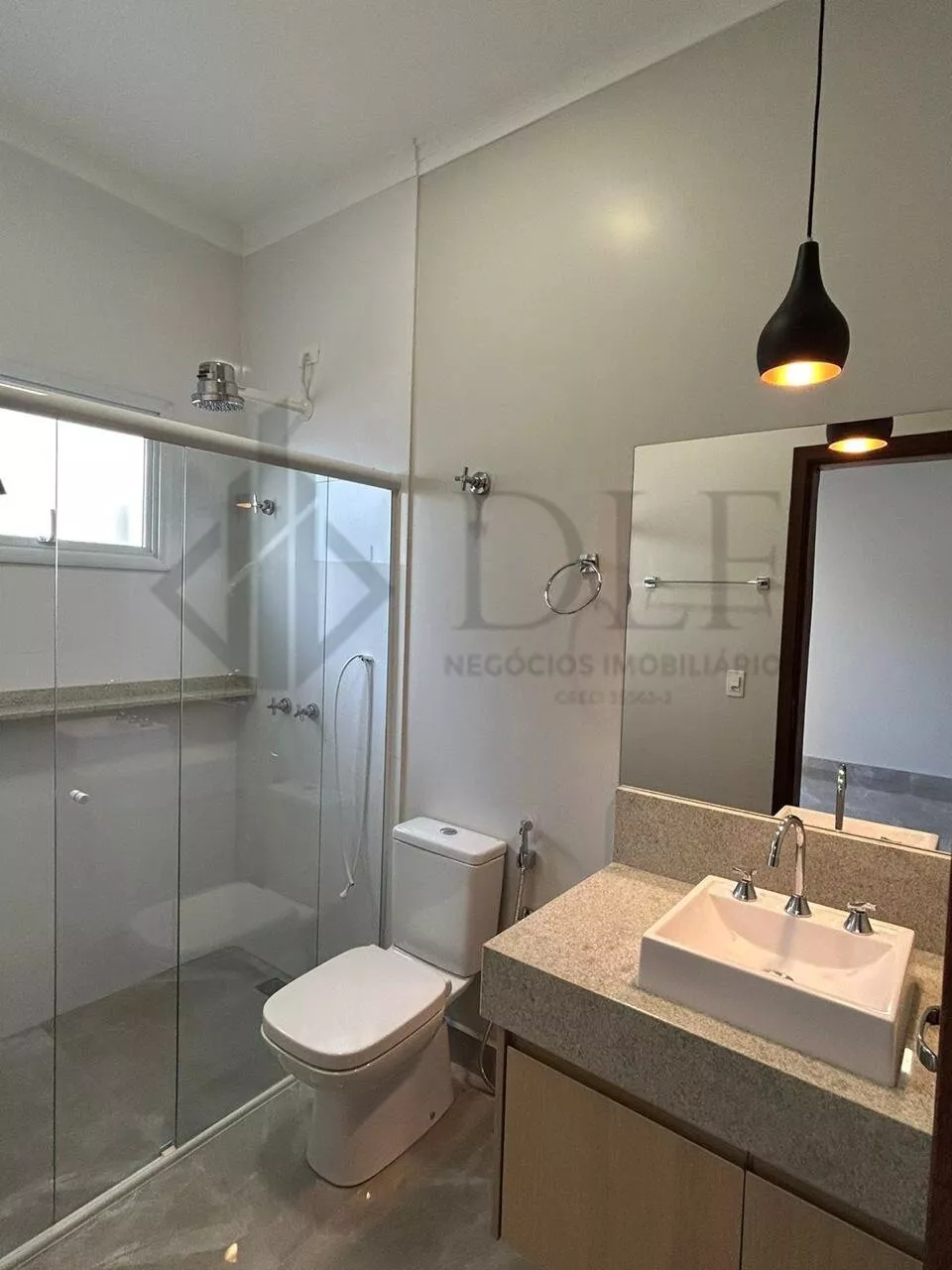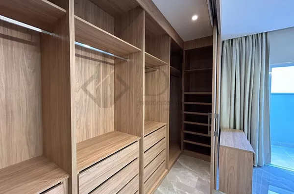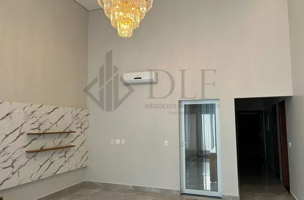 Casa térrea espetacular no Condomínio Duas Marias para locação com 201,92m² de área construída, sala 2 ambientes com pé direito duplo, 3 suítes com móveis planejados, incluindo uma suíte master com closet e ar condicionado.