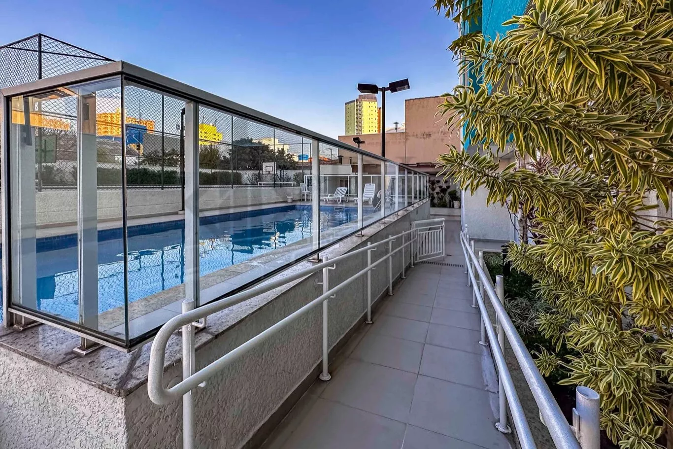 O condomínio oferece uma ampla gama de opções de lazer, como quadra poliesportiva, piscina elevada, academia, salão de festas mobiliado, brinquedoteca, escorregador para crianças, espaço teen, churrasqueira e forno tipo iglu. A segurança é garantida com presença física 24 horas, monitoramento por câmeras, guarita blindada e controle de acesso por tag. O prédio também é acessível, com rampas para cadeirantes e leitura em braille.