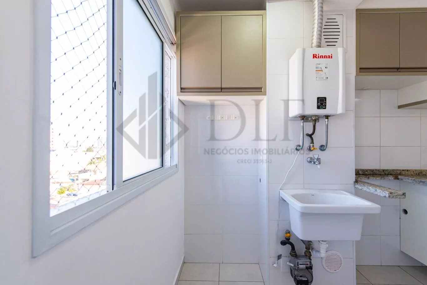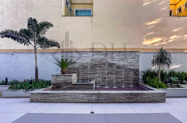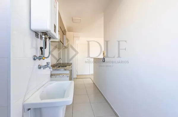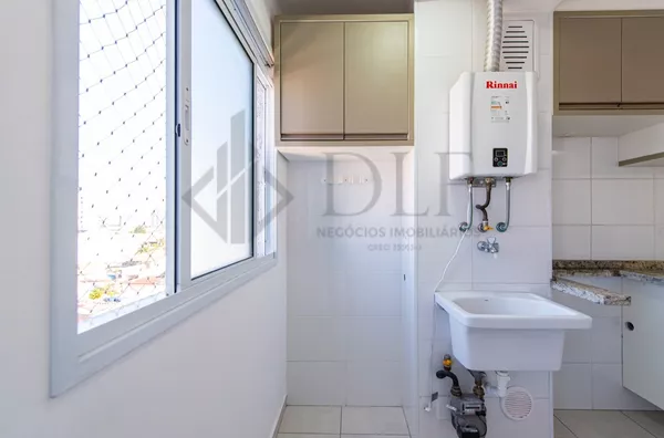 O piso da sala e do corredor é em porcelanato, e os quartos possuem piso vinílico. O imóvel vem equipado com armários planejados na cozinha, na varanda gourmet e nos banheiros, além de contar com uma central de aquecimento de água a gás.