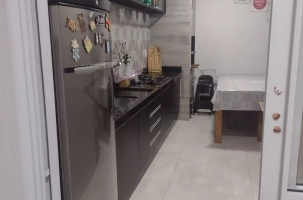 Moderna e prática, esta casa sobrado conta com 3 dormitórios, sendo 1 suíte com closet, sala de dois ambientes, cozinha planejada e área gourmet com churrasqueira. Oferece também garagem para 2 carros e área de serviço.