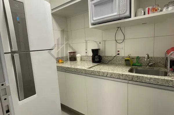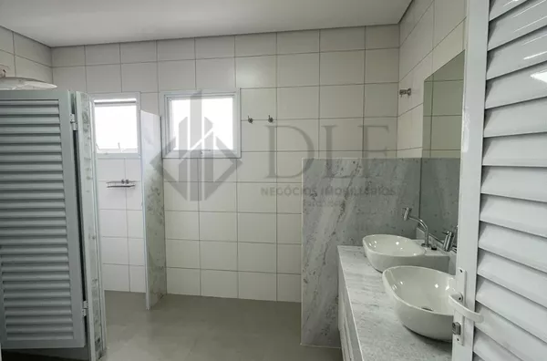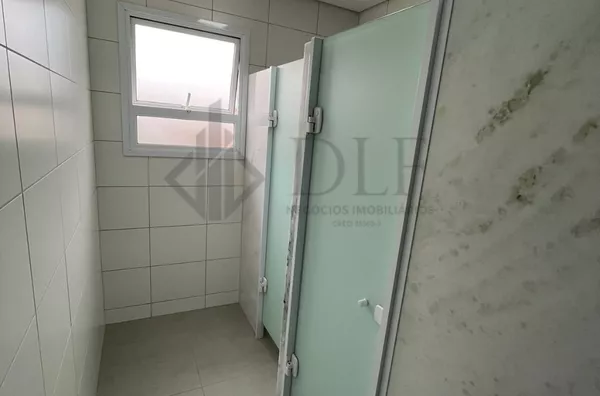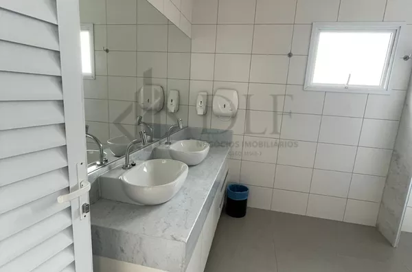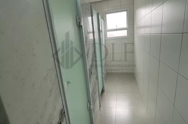 Banheiro masculino coletivo com armários embutidos, pia com espelho, composto por dois box com vaso sanitário, um box com mictório. Banheiro feminino coletivo com armários embutidos, pia com espelho, composto por dois box com vaso sanitário, um box com chuveiro. Copa compartilhada com armário embutidos, com geladeira e micro-ondas. Área de Serviço com prateleiras e tanque lavatório.