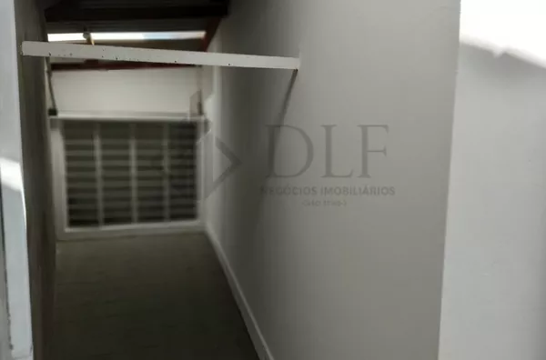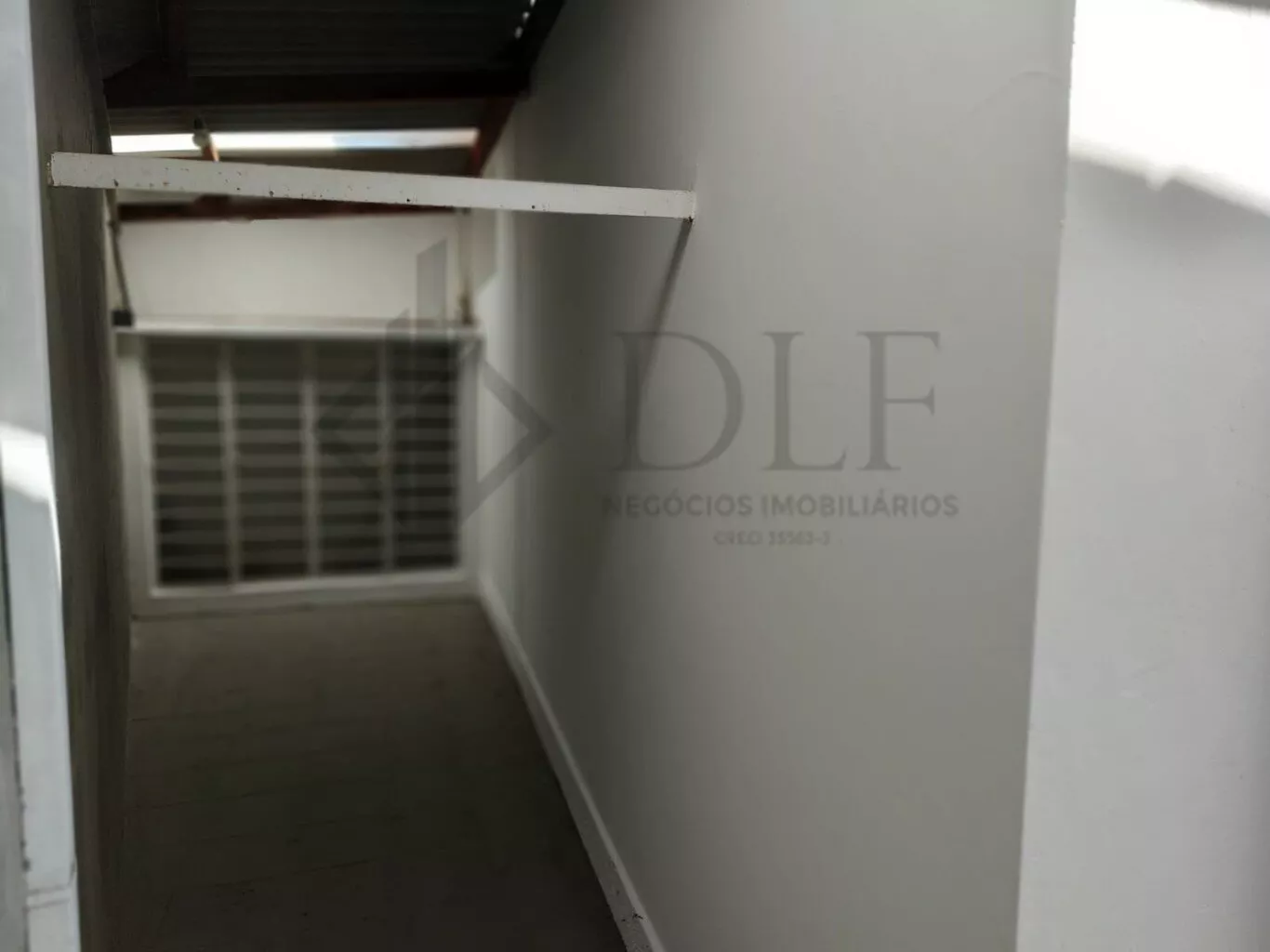 Quintal pequeno com piso em cerâmica, espaço depósito nos fundos.