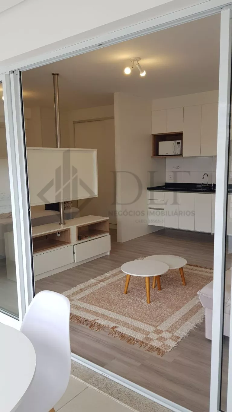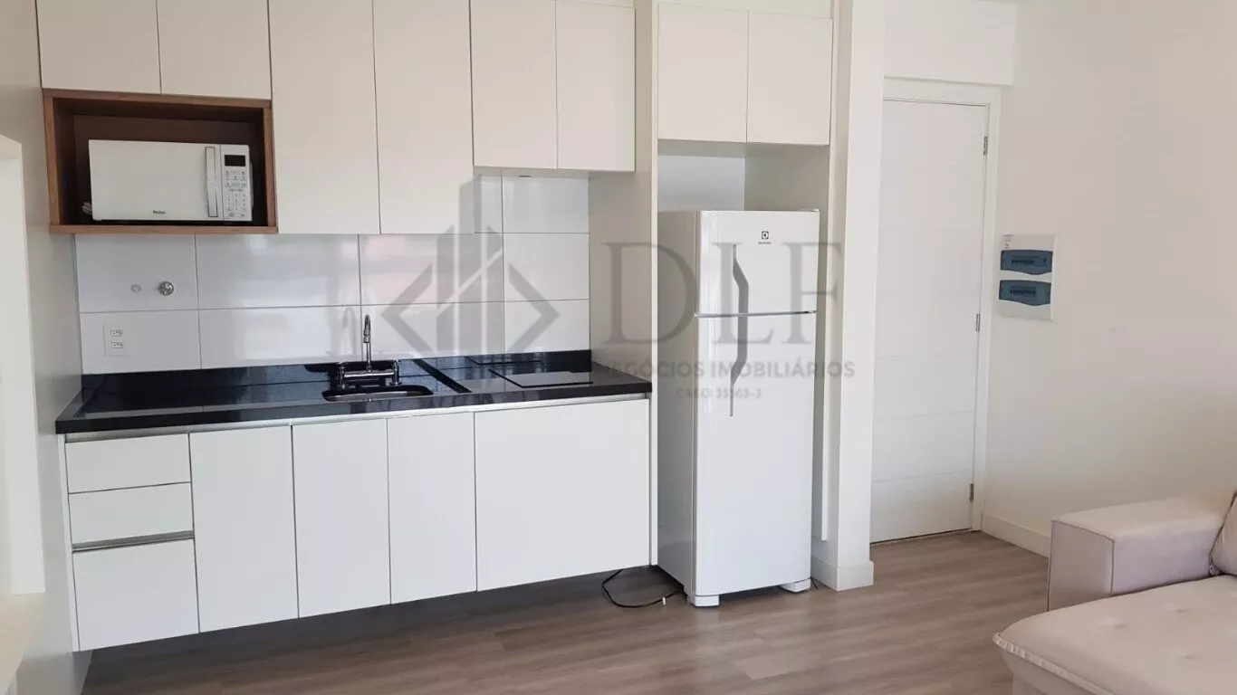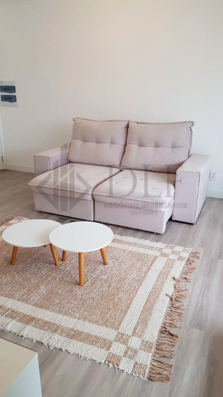 Fica no 3º andar, possui 1 vaga de garagem e está mobiliado com cooktop, geladeira, microondas, cama box queen, sofá retrátil 2 lugares, mesa com 4 cadeiras, mesinhas de centro, tapete, painel para TV, armários na cozinha, banheiro e quarto.
