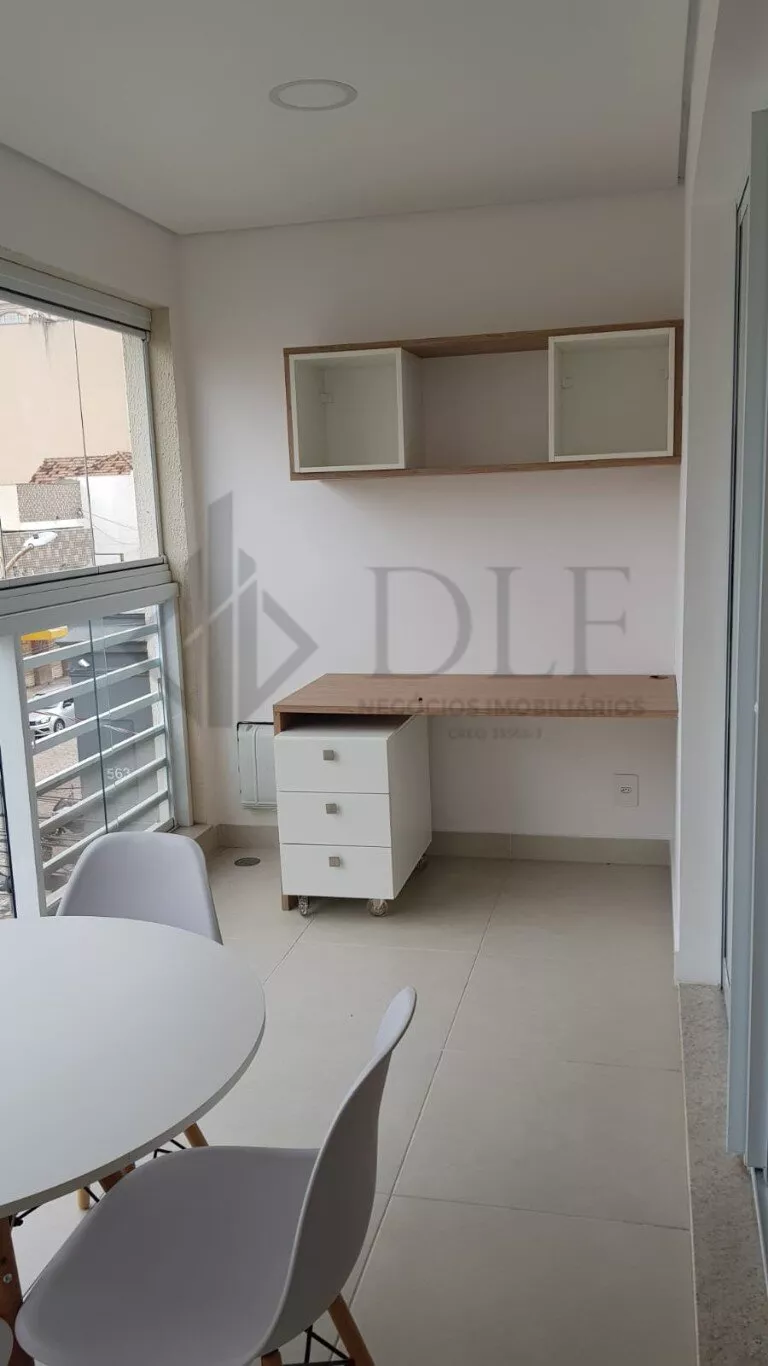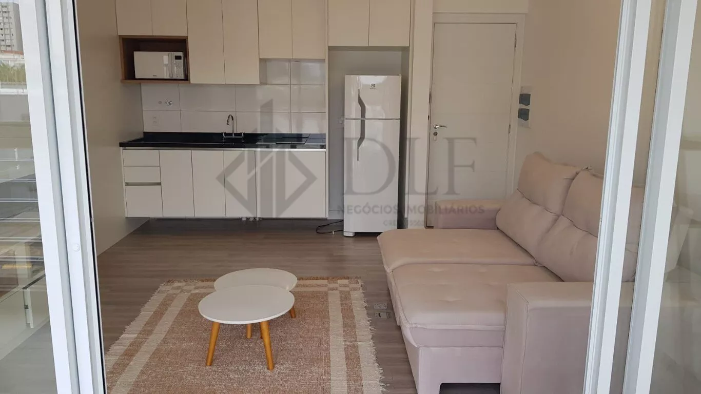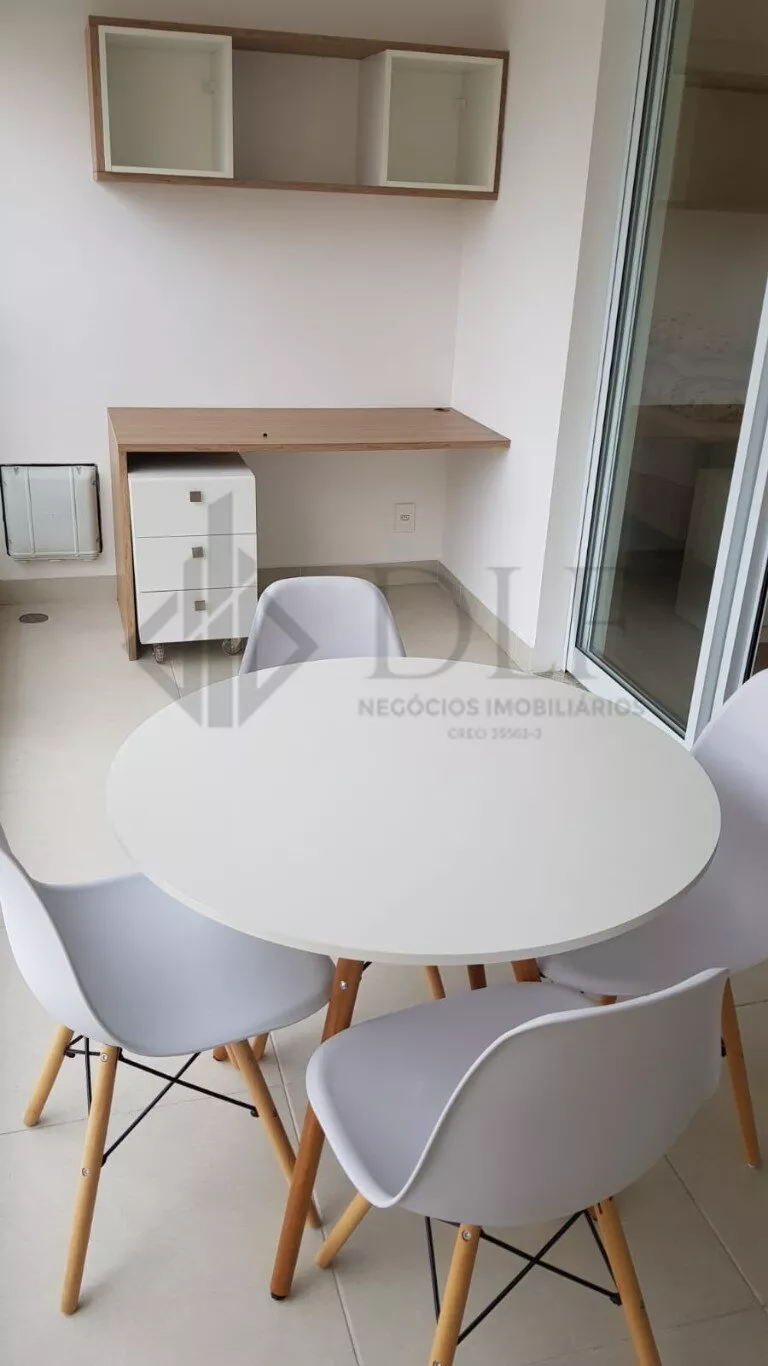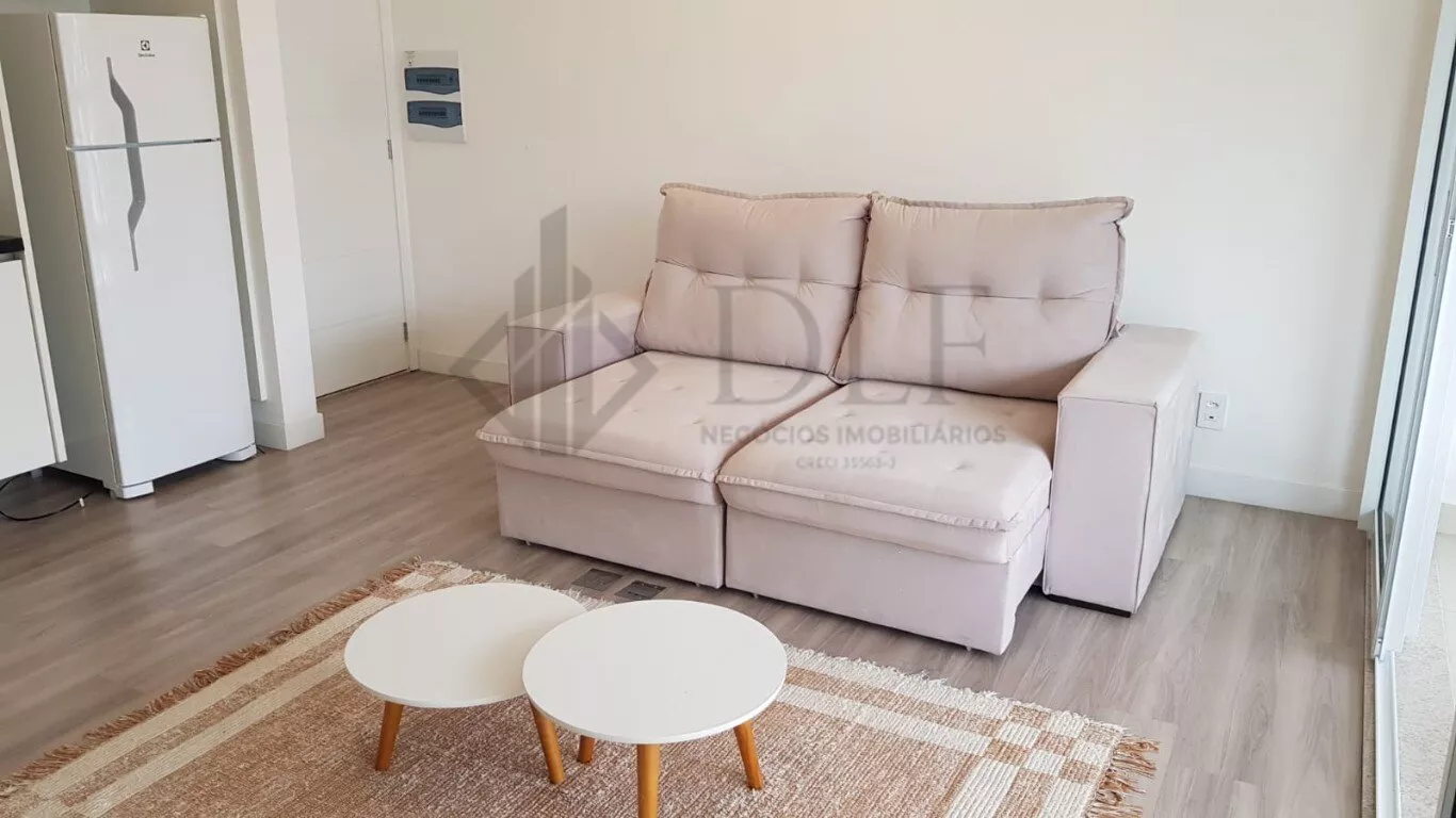 Fica no 3º andar, possui 1 vaga de garagem e está mobiliado com cooktop, geladeira, microondas, cama box queen, sofá retrátil 2 lugares, mesa com 4 cadeiras, mesinhas de centro, tapete, painel para TV, armários na cozinha, banheiro e quarto.