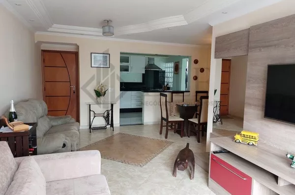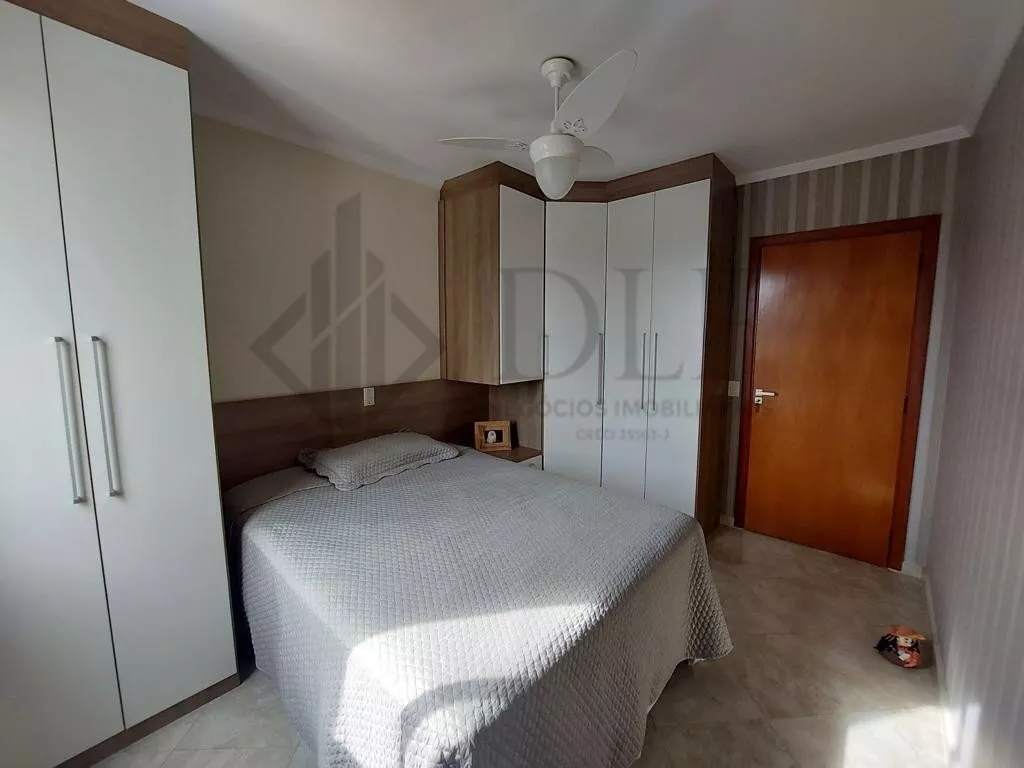 Imóvel aconchegante para alugar com 3 quartos, 2 banheiros, cozinha área de serviço, sala com sacada e 2 vagas na garagem. Piso em porcelanato. Armários nos quartos, banheiro e cozinha.
