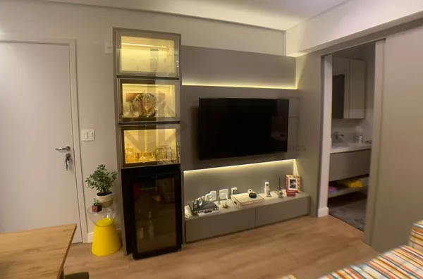 Apartamento a venda no Taquaral em Campinas. Lindo apartamento de um dormitório, acabamento impecável, todo planejado, com estilo moderno e sofisticado. Ar condicionado Smart quente e frio, no quarto e na sala. Torneiras da cozinha e da pia do banheiro com agua quente. Excelente espaço gourmet no condominio, academia e piscina.