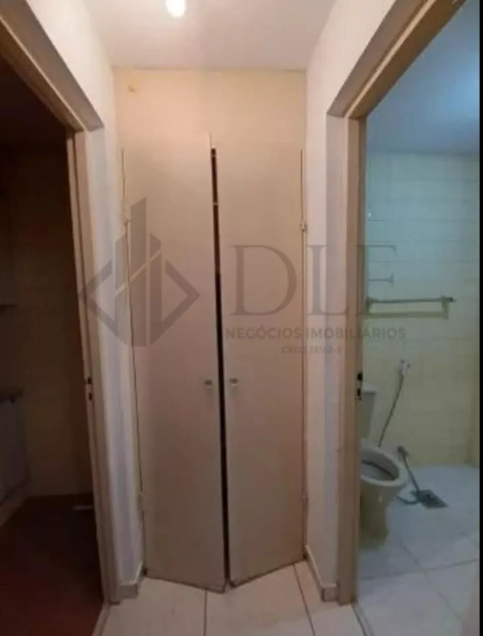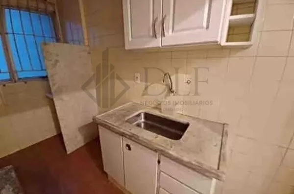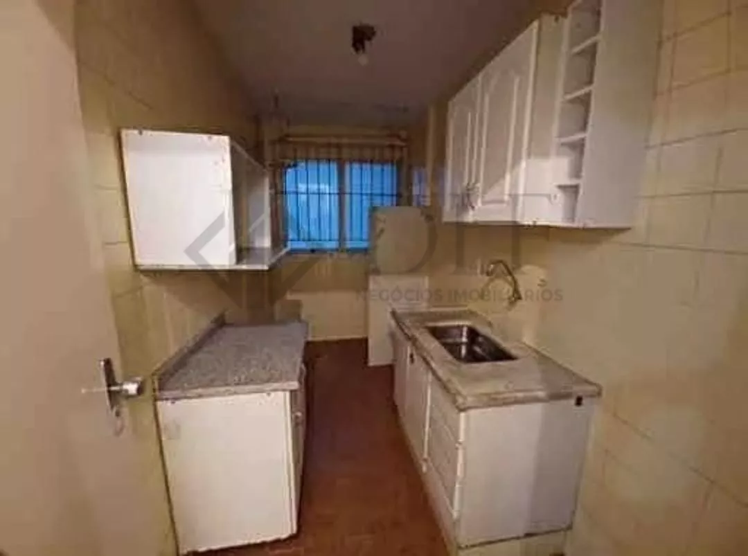 Kitnet com quarto, sala, cozinha, área de serviço e banheiro.