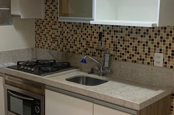 O apto possui porcelanato de ótima qualidade em todos os cômodos,móveis planejados com forno elétrico e cook top.