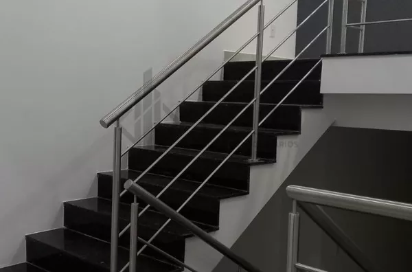 Casa com 3 suítes, sala ampla, cozinha, área de serviço, 5 banheiros.