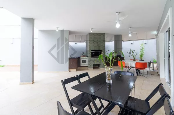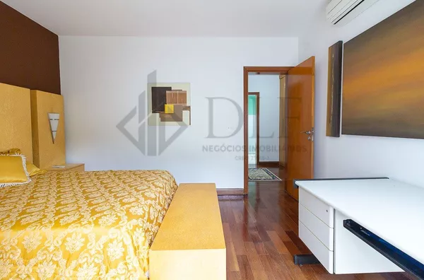 O imóvel oferece três vagas cobertas com depósito e cinco descobertas. Equipado com ar-condicionado split em três dormitórios, acabamento em mármore Crema Marfil paginado, caixa d'água de 6 mil litros, placa solar e boiler de alta pressão de 500 litros.