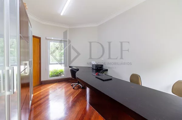Destacam-se o amplo escritório com jardim, sala de TV, seis dormitórios (duas suítes, uma delas master com closet e terraço), sete banheiros, lavabo e uma sala para três ambientes. A varanda ampla é conjugada com churrasqueira, e há ainda um estúdio, dependência de empregada e lavabo da piscina.
