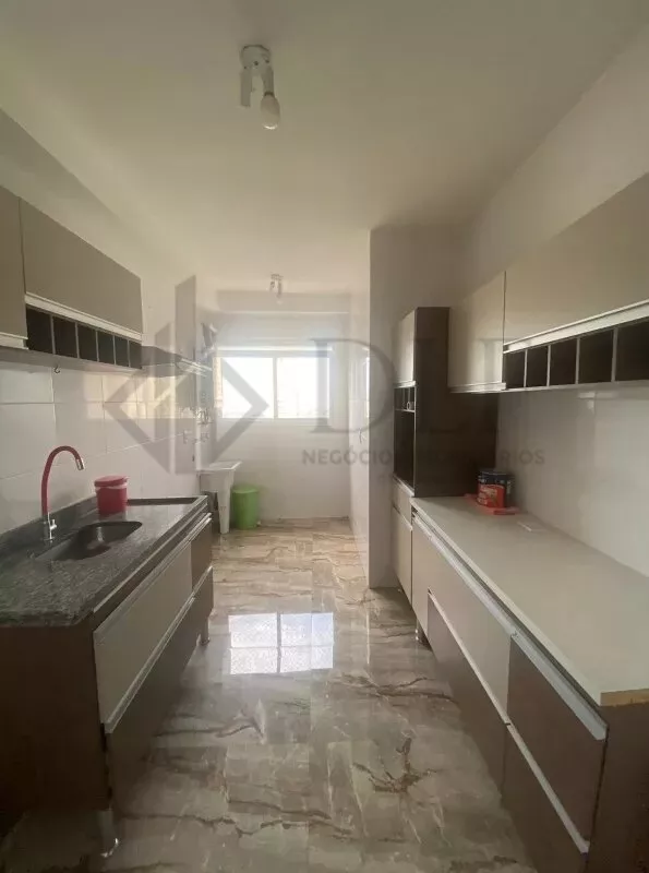 Com 3 quartos, 2 banheiros (sendo 1 suíte), sala 2 ambientes, cozinha ampla com área de serviço. Possui guarda-roupa, cabeceira com criados-mudos na suíte, armários na cozinha, depurador, e armários com espelhos nos banheiros.
