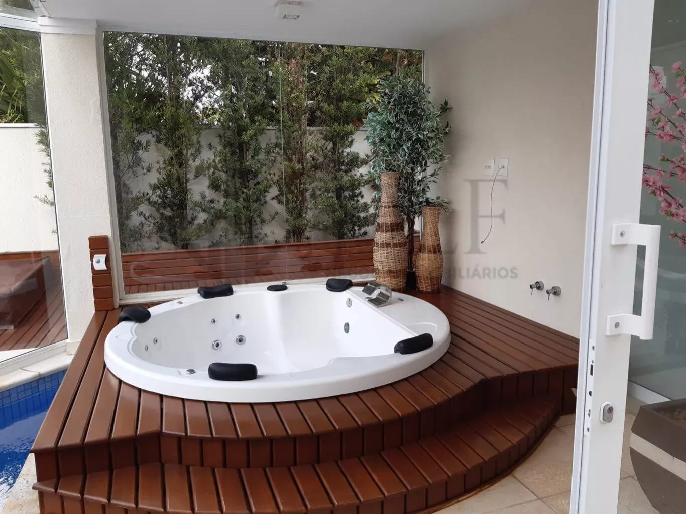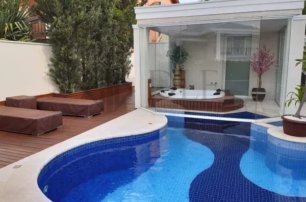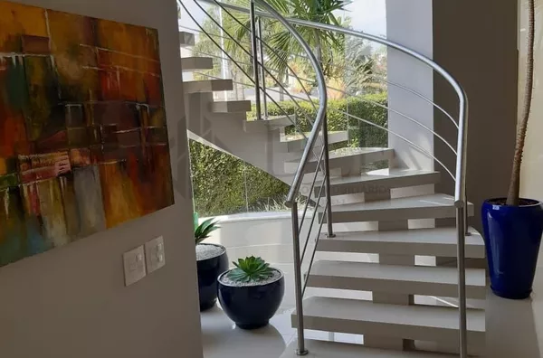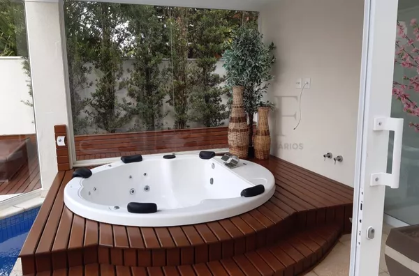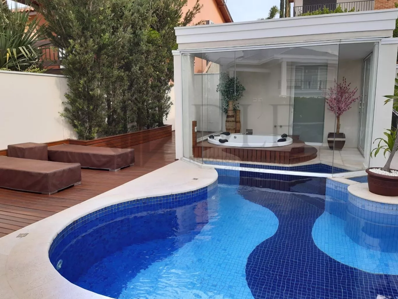 Conta com 5 suítes, e 2 banheiros sociais, sala de TV toda equipada, cozinha planejada com ilha, escritório e área gourmet com piscina.