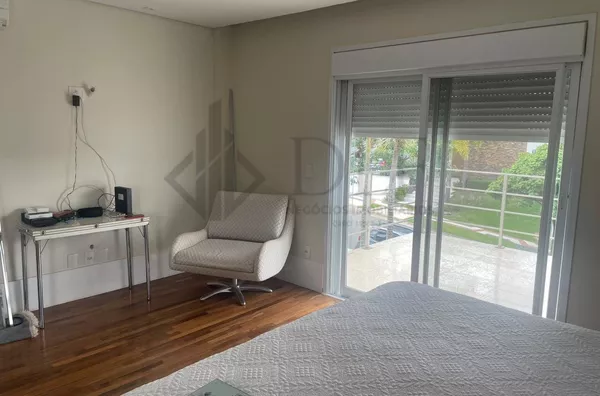 No pavimento superior, encontram-se 4 suítes espaçosas, todas com varanda, sendo a suíte máster com closet e hidromassagem. O condomínio oferece uma área de lazer completa, com quadras de tênis, squash e poliesportiva, piscina coberta, academia e ciclovia, proporcionando um estilo de vida confortável e dinâmico.