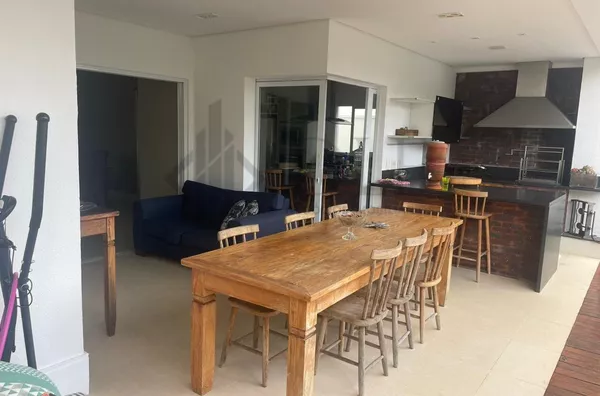 Com um amplo living de pé direito duplo, lareira e varanda gourmet integrada, é perfeito para receber. Além disso, conta com um home theater, cozinha americana planejada e área de serviço completa.