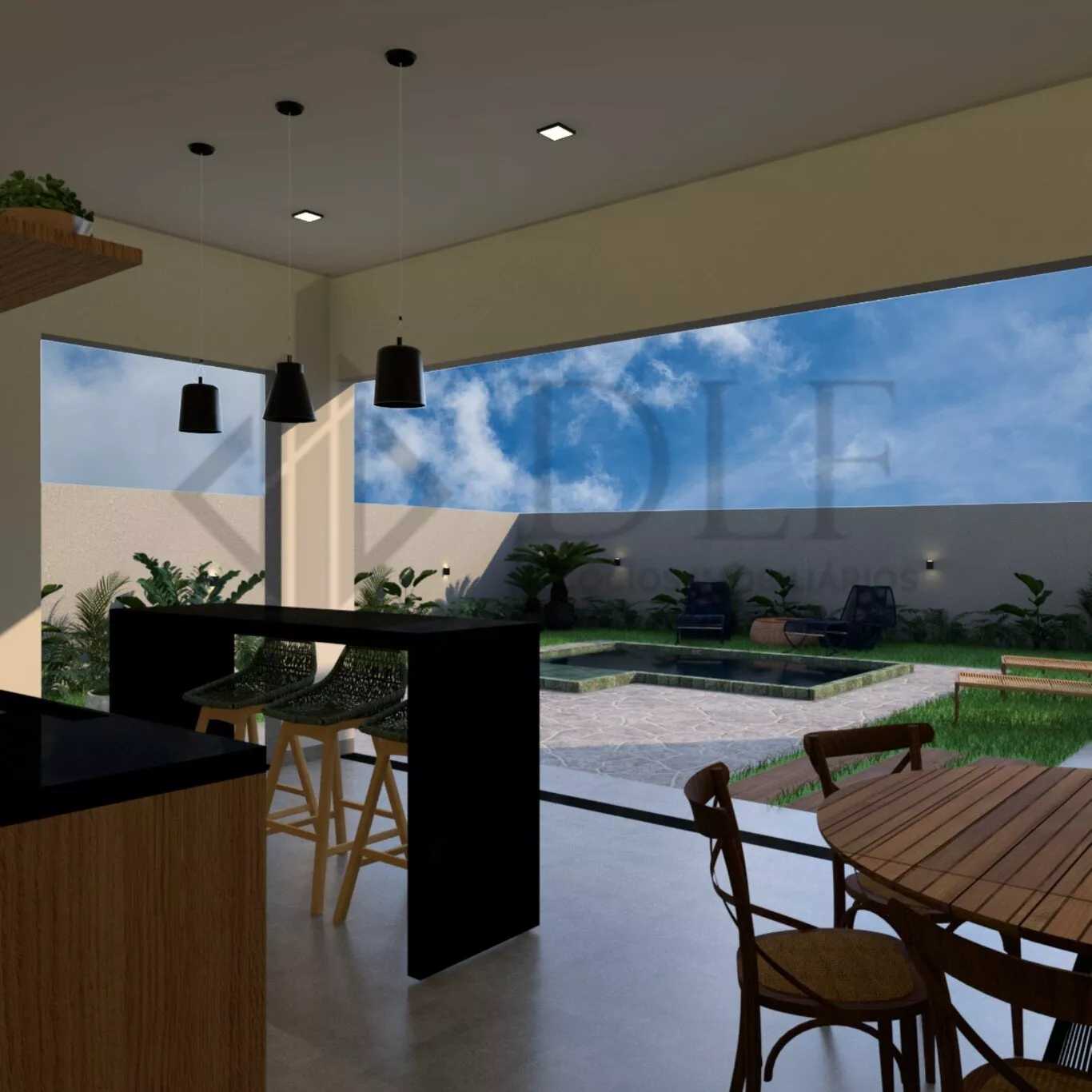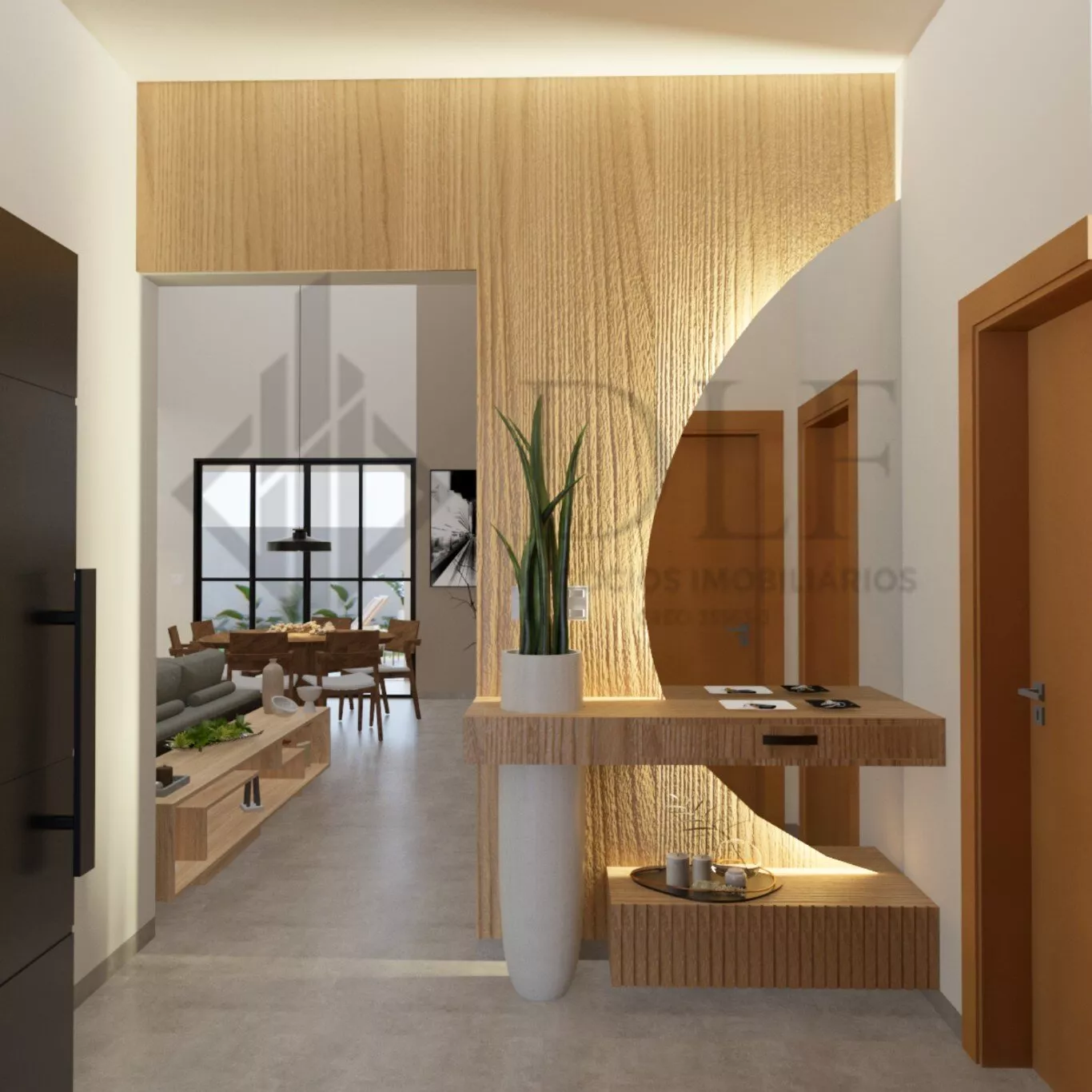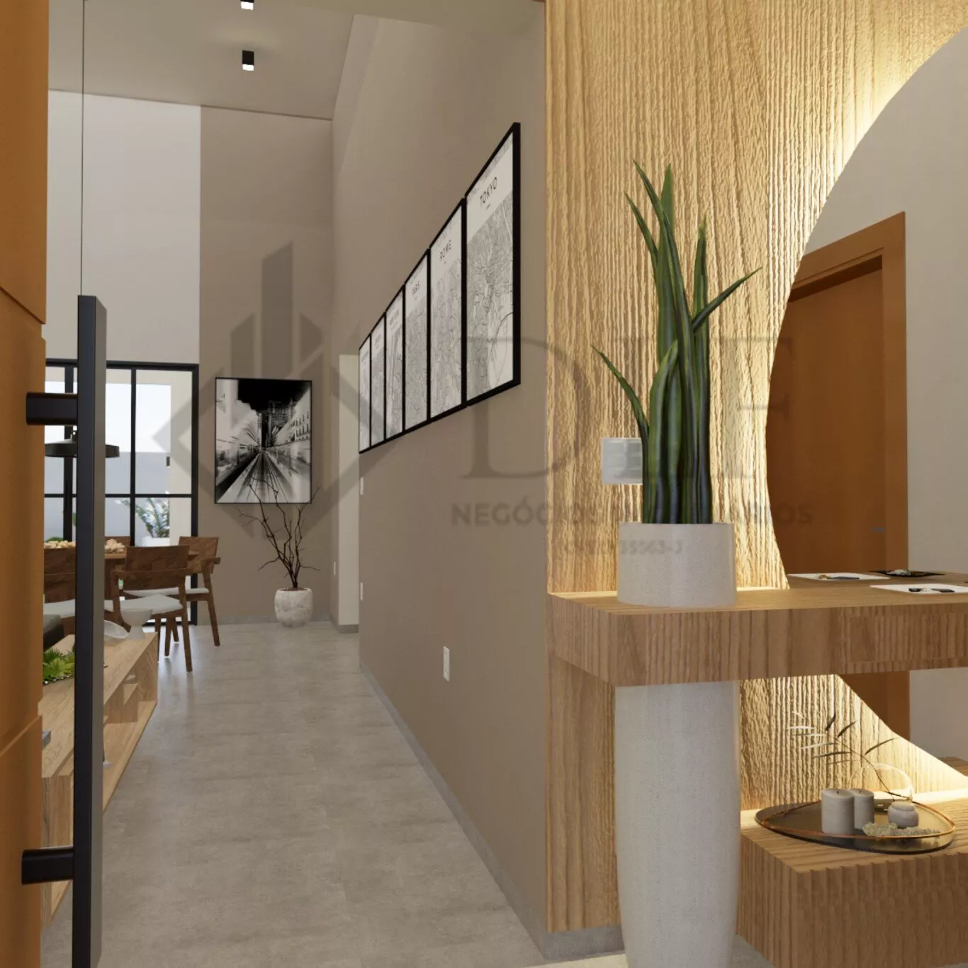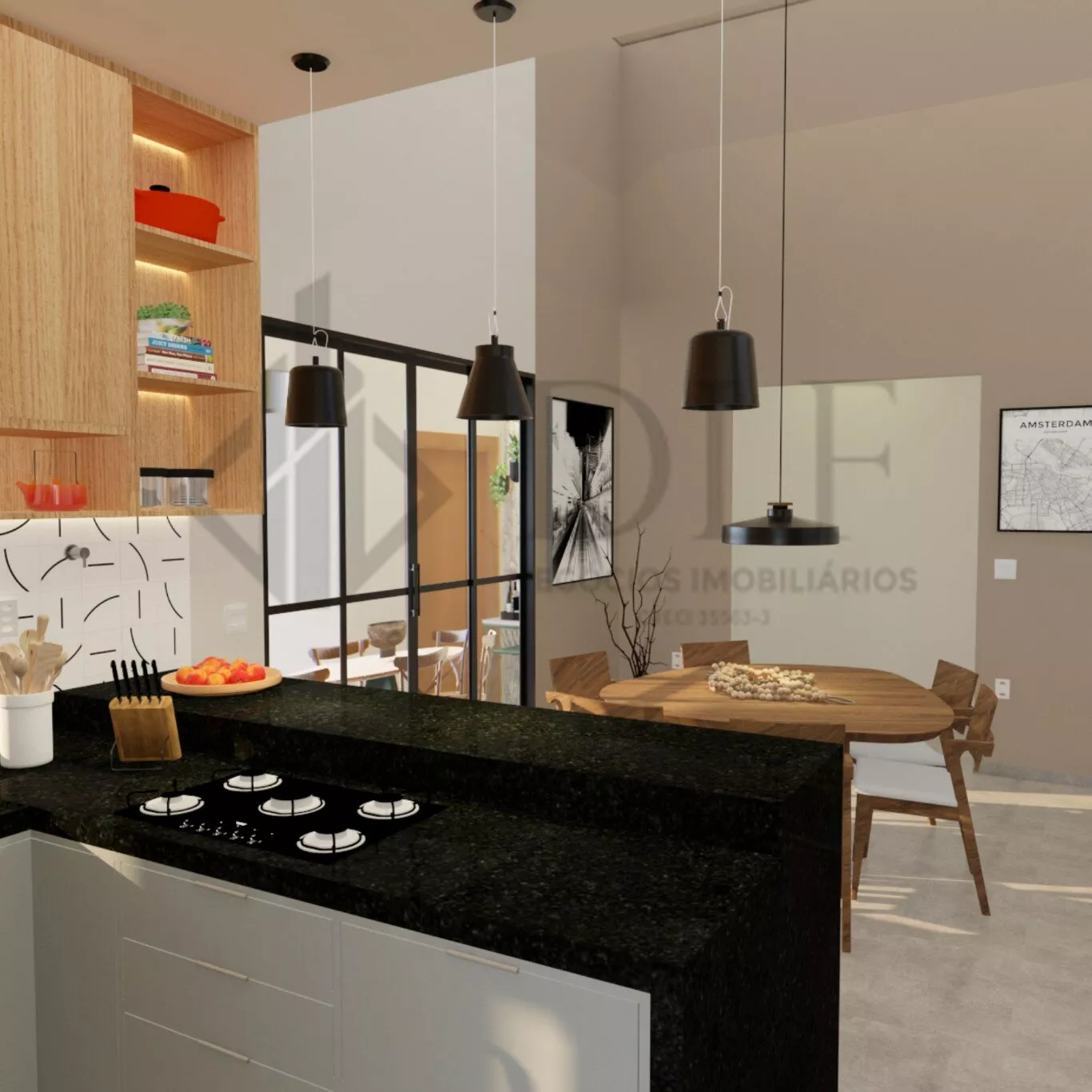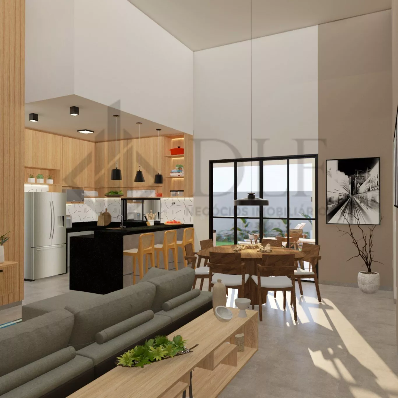 Área Social Integrada: Sala de estar com pé direito duplo, sala de jantar e cozinha totalmente integrados, criando um ambiente ideal para entreter com estilo.