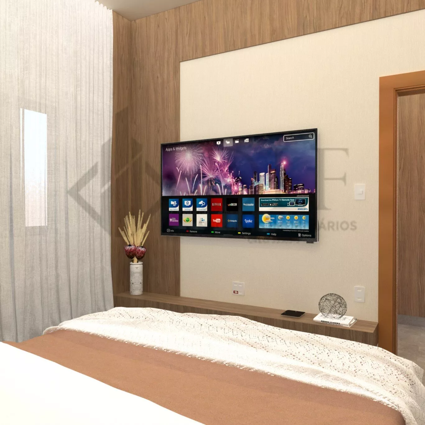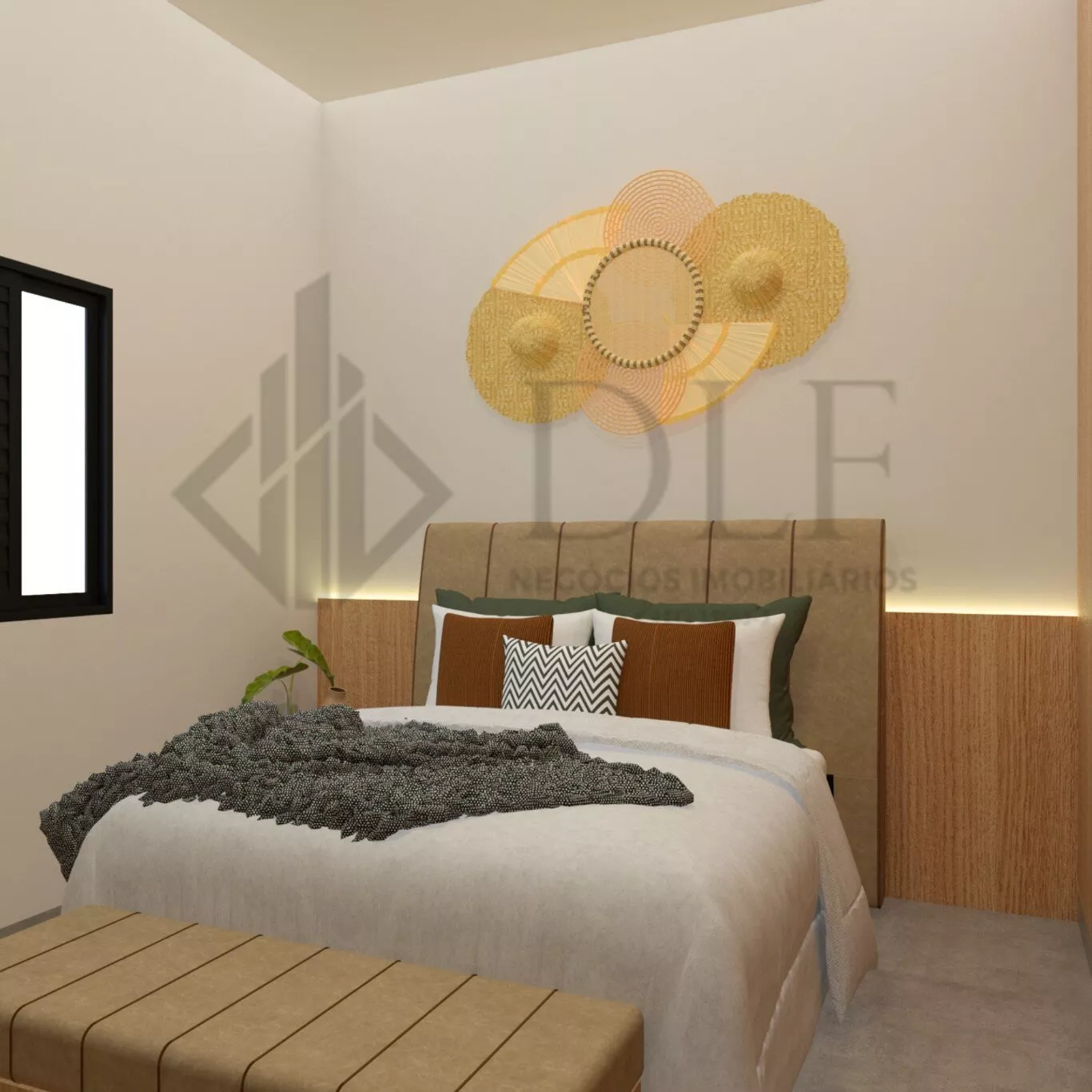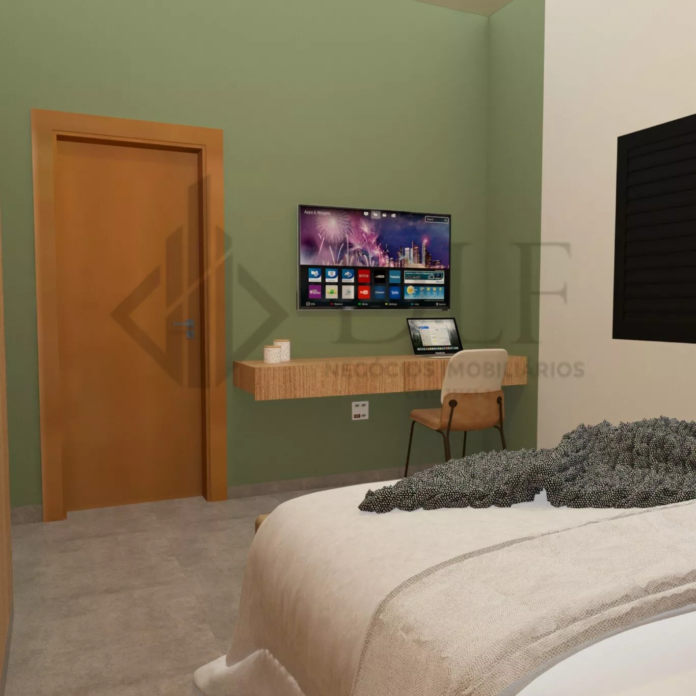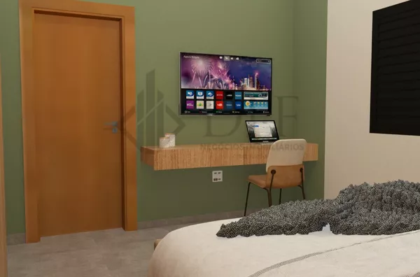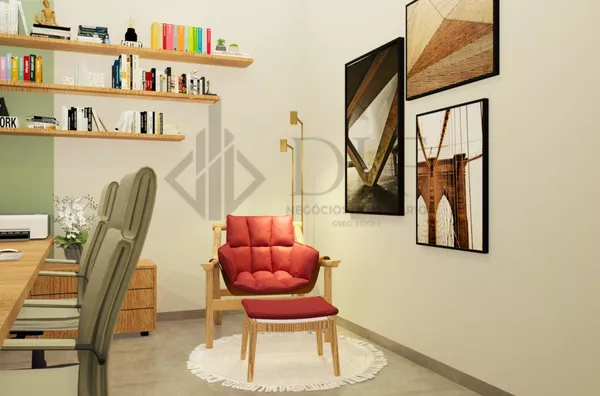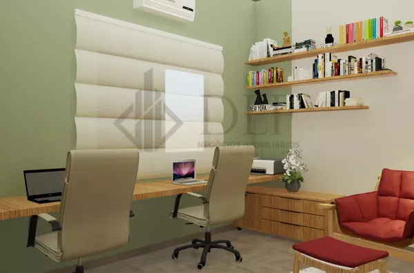 Escritório Reversível Escritório com marcenaria elegante, podendo ser facilmente convertido em um quarto adicional conforme necessário.