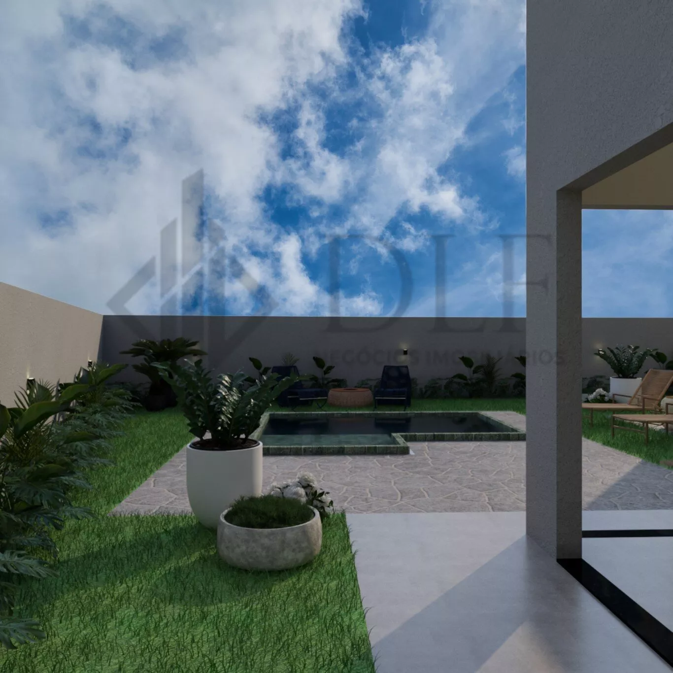 Paisagismo no quintal, criando um ambiente relaxante e acolhedor.