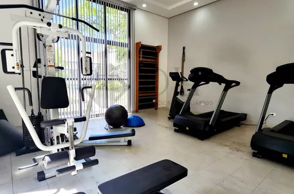 Academia: Espaço equipado com aparelhos de exercício físico para moradores utilizarem como parte das instalações de lazer.
