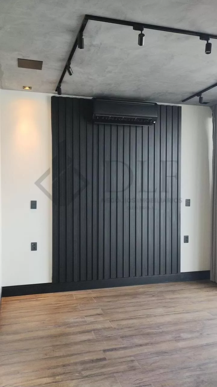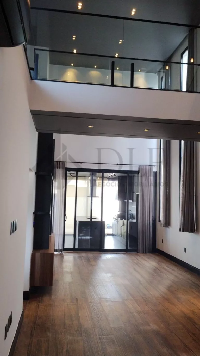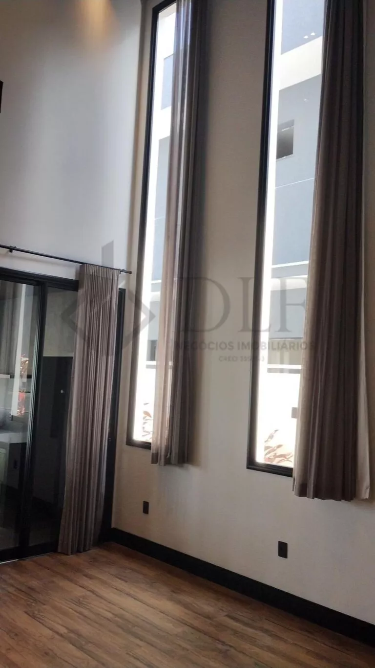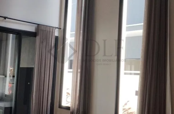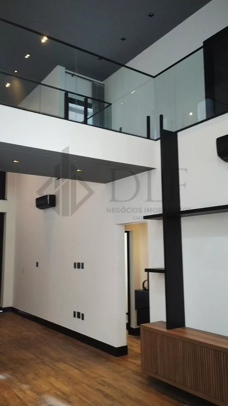 Uma escada em aço com degraus de madeira vazados e guarda-corpo em vidro leva ao piso superior. Aqui, uma suíte encantadora com ar split, closet e banheiro completo espera por você. A ampla sacada, preparada para ser transformada em academia ou estúdio, oferece versatilidade. A suíte master é um verdadeiro refúgio, com sala íntima, iluminação abundante, sacada espaçosa, um closet luxuoso repleto de espelhos e um banheiro de casal deslumbrante com box piso teto, ducha dupla e bancada com armários. Todos os ambientes são adornados com cortinas elegantes e acabamentos de alta qualidade.
