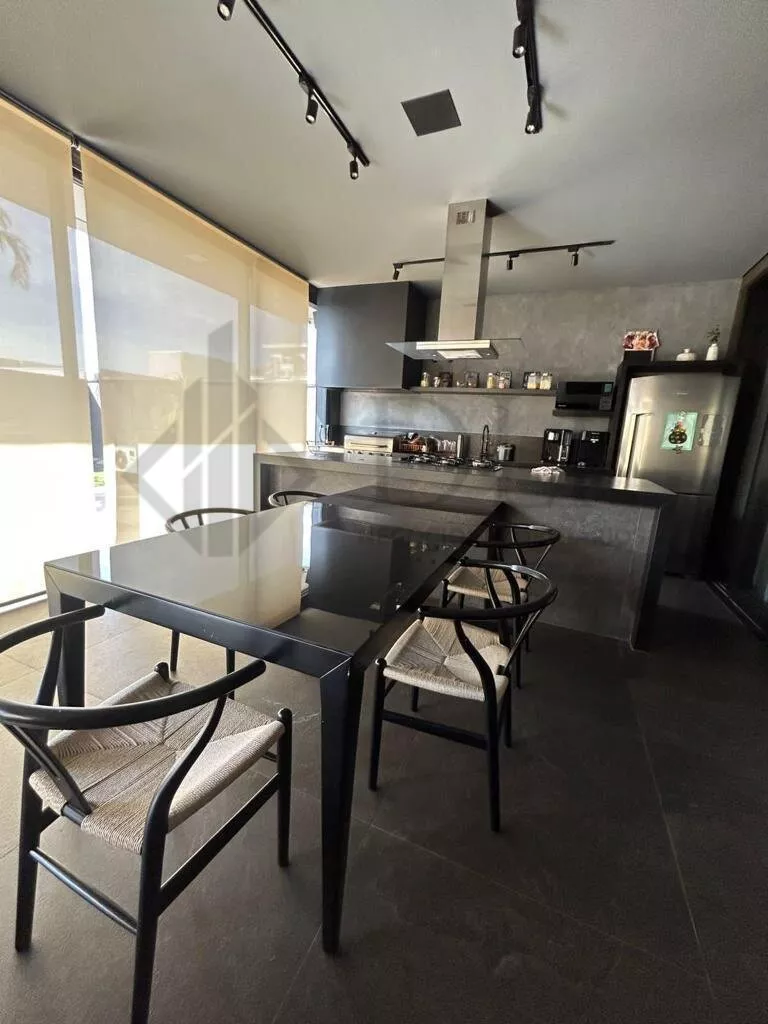 As salas de estar e jantar, com pé direito alto, são ricas em detalhes que impressionam. Equipadas com painel de TV, dois aparelhos de ar condicionado split e um belo aparador na sala de jantar, esses espaços são decorados com cortinas luxuosas e projetados para oferecer conforto e elegância. A automação completa de iluminação, cortinas, ar condicionado e piscina garante um ambiente sempre perfeito com apenas um toque.