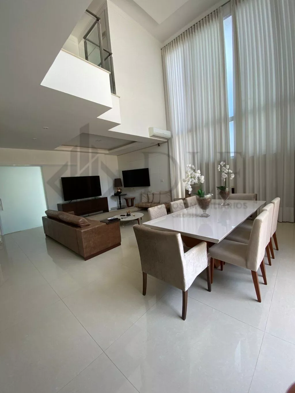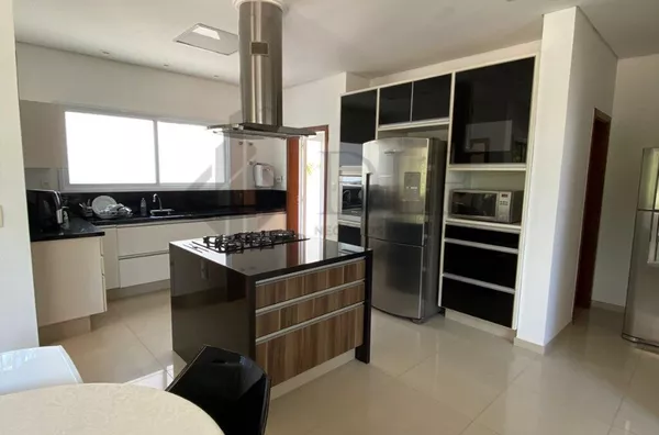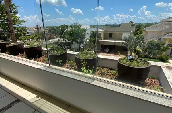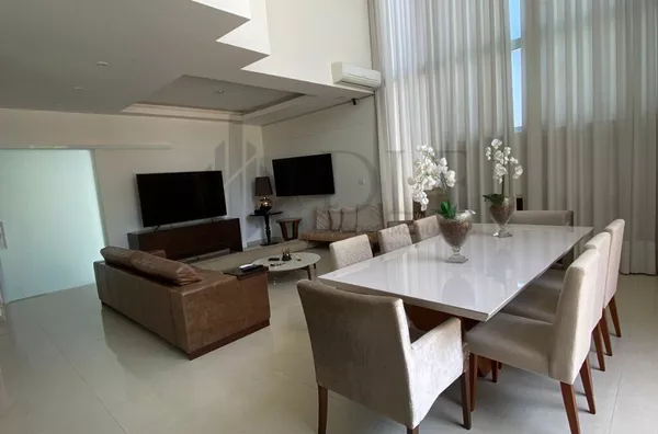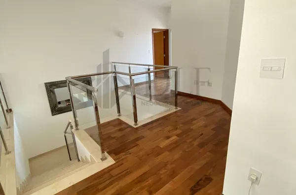 Este imóvel de alto padrão conta com 4 suítes espaçosas e elegantes, todas com varanda, incluindo uma luxuosa suíte master. O piso térreo apresenta um pé direito alto e um hall de entrada impressionante, que leva a um living aconchegante para 3 ambientes, equipado com lareira e lavabo, além de marcenaria de primeira linha.
