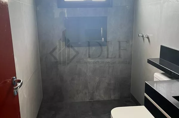 Esta incrível casa oferece uma garagem para quatro carros, com duas vagas cobertas. A sala de estar apresenta pé direito alto, revestida em porcelanato e com sancas, criando um ambiente elegante e acolhedor. A sala de jantar é ampla e sofisticada, perfeita para receber amigos e familiares.