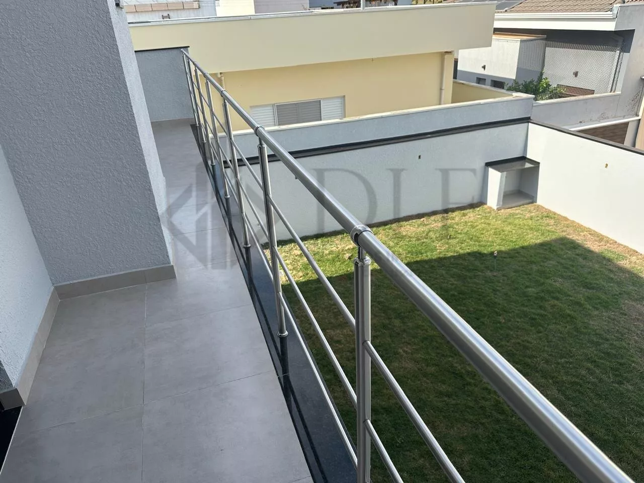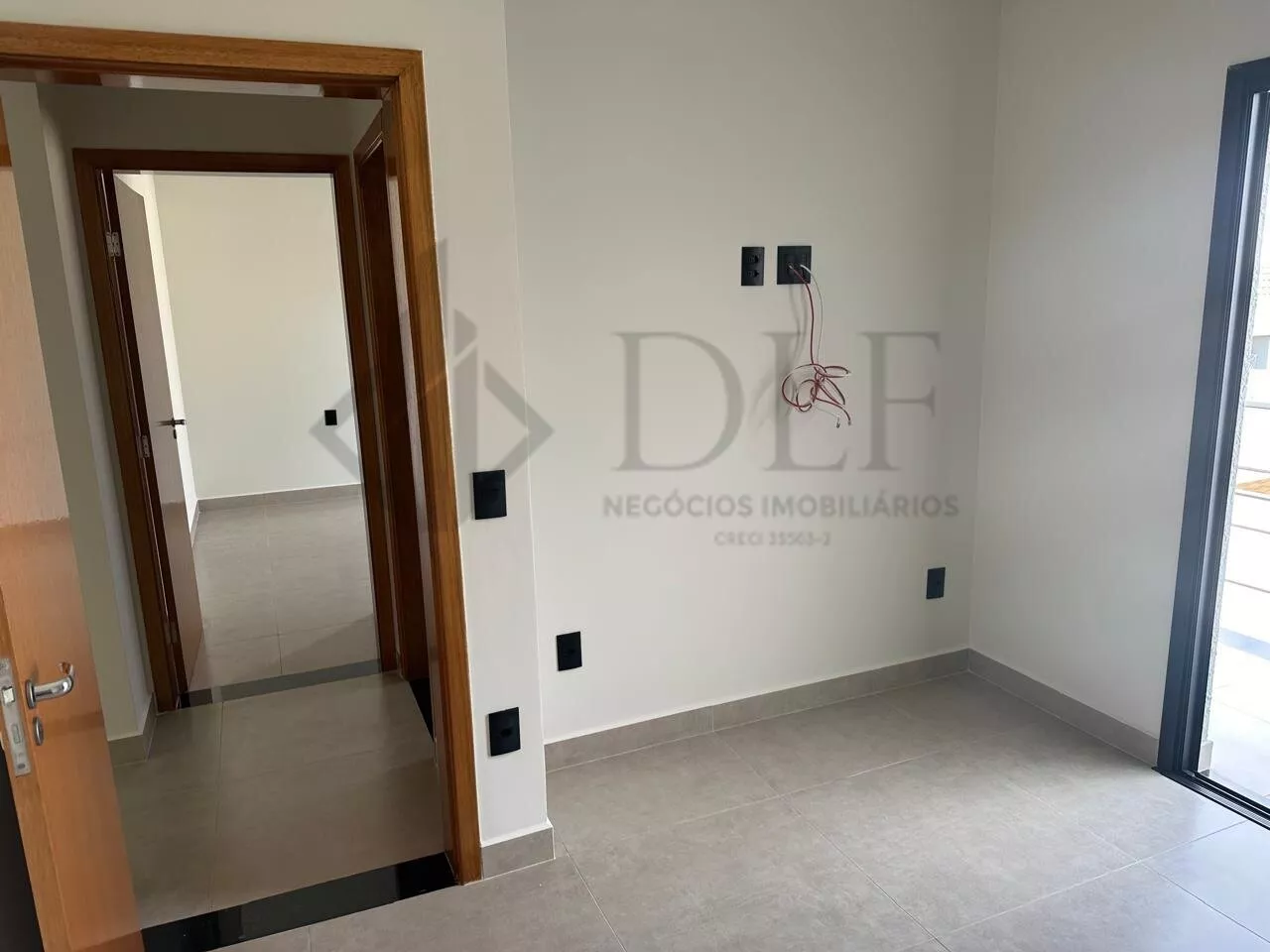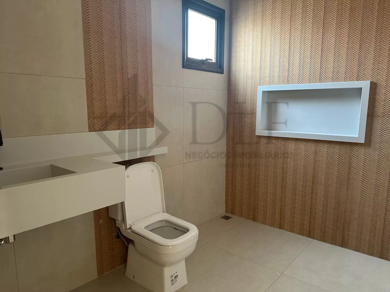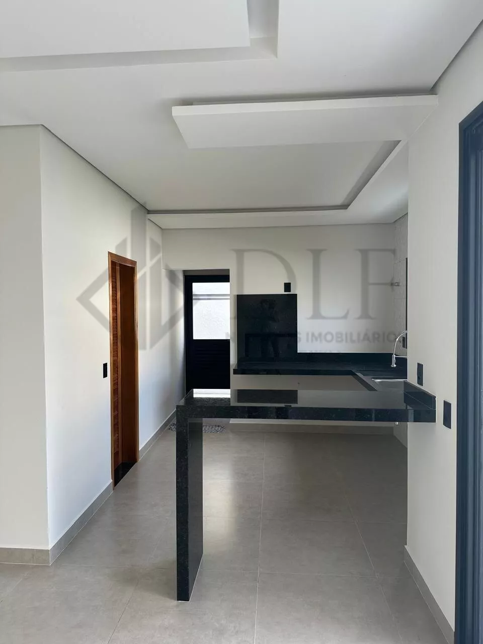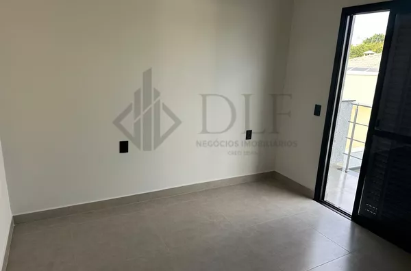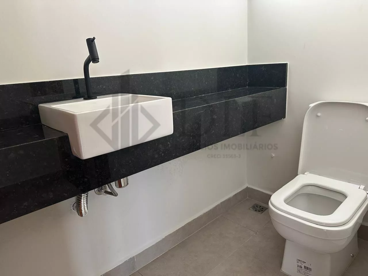 Casa moderna à venda em condomínio fechado e com excelente localização. Conta com garagem para quatro carros, sala de estar com pé direito alto, porcelanato e sancas. Cozinha sofisticada, três quartos (incluindo uma suíte) e um escritório no pavimento inferior.