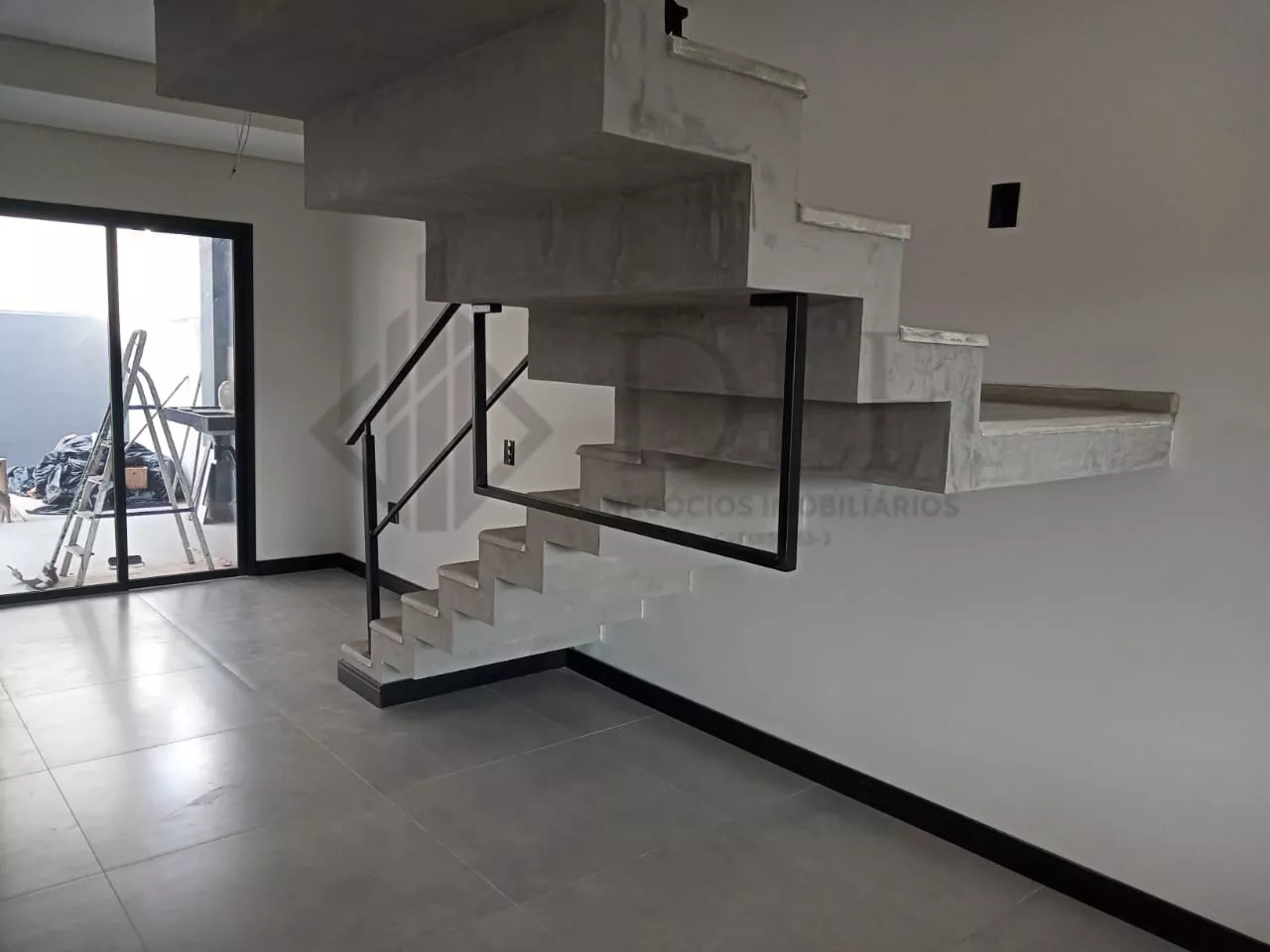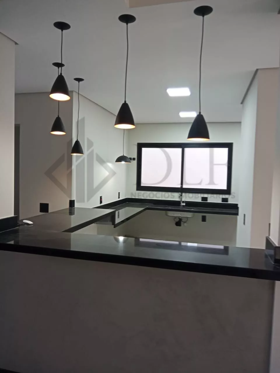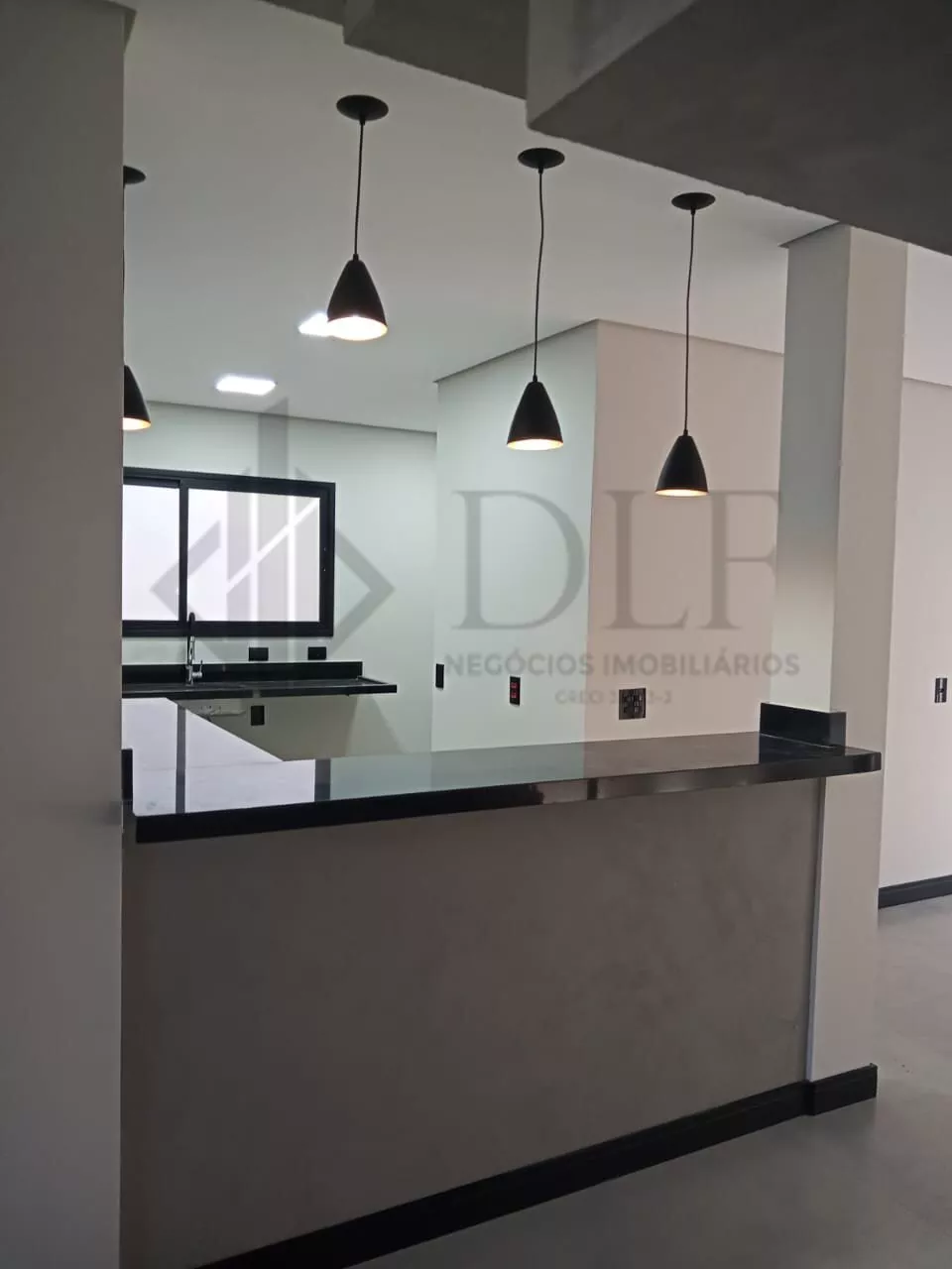 A residência dispõe de garagem coberta para 2 veículos, hall de entrada que confere sofisticação ao acesso, e uma ampla sala de estar e jantar integradas, criando um ambiente de convivência espaçoso e confortável. A cozinha americana é moderna e funcional, acompanhada de despensa e lavanderia independentes, proporcionando praticidade no dia a dia.