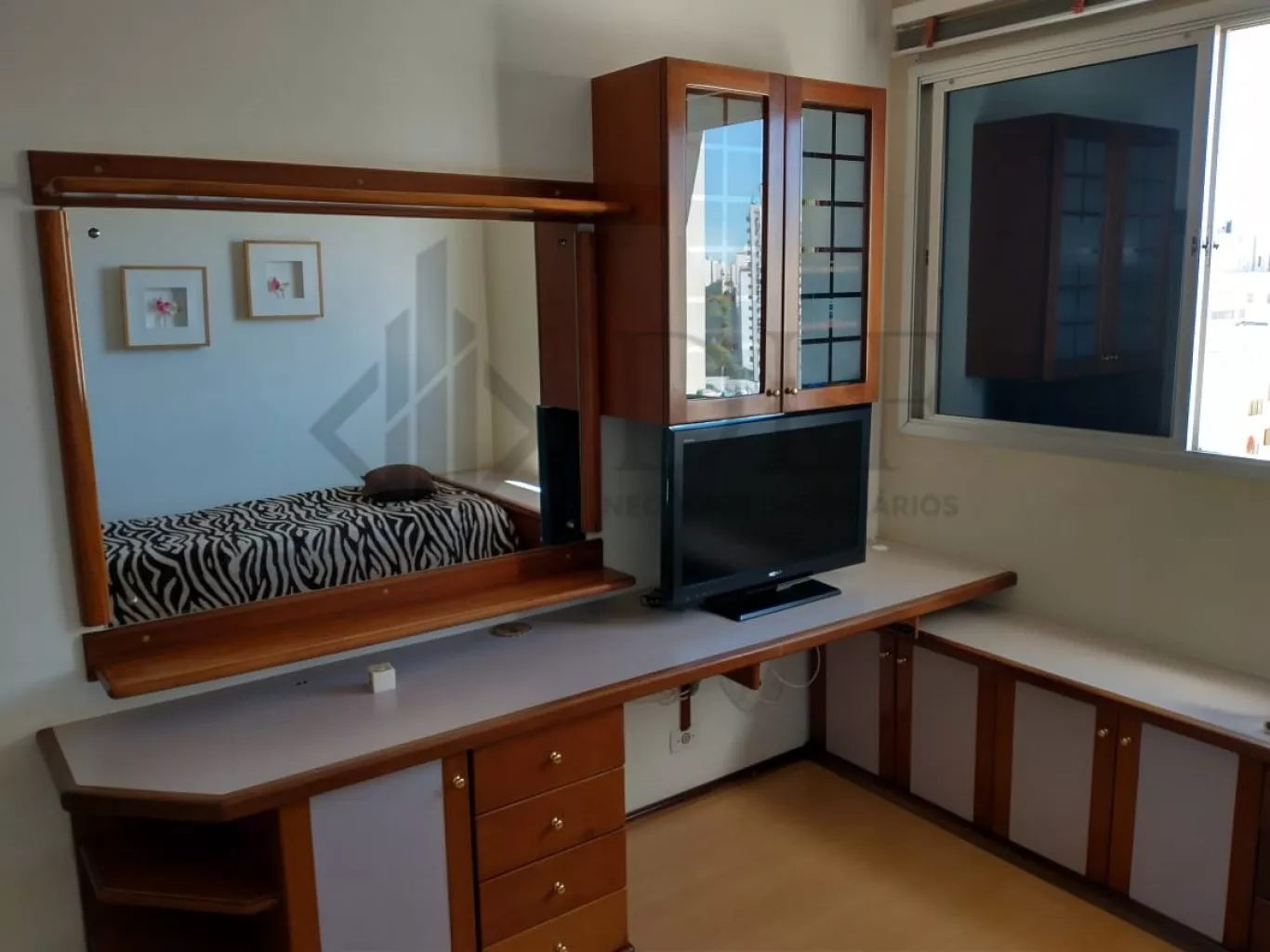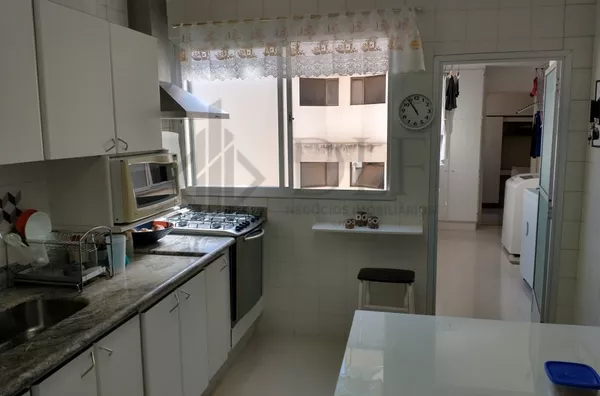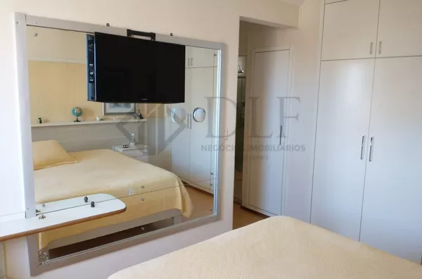 O imóvel possui sala de estar, copa, 3 dormitórios (sendo 1 suite) com móveis planejados, 1 banheiro social, cozinha com móveis planejados, área de serviço, quarto e banheiro de serviço.