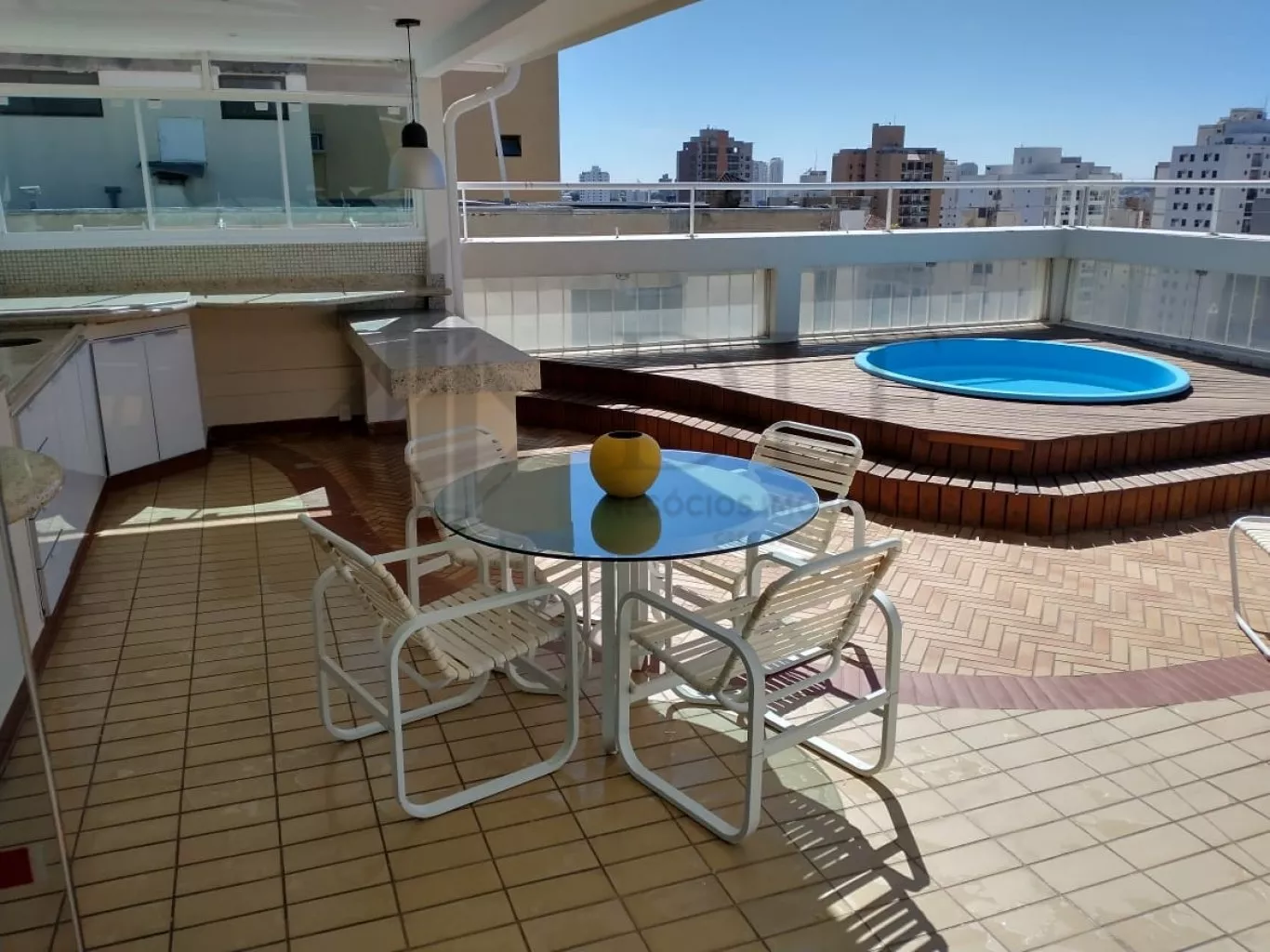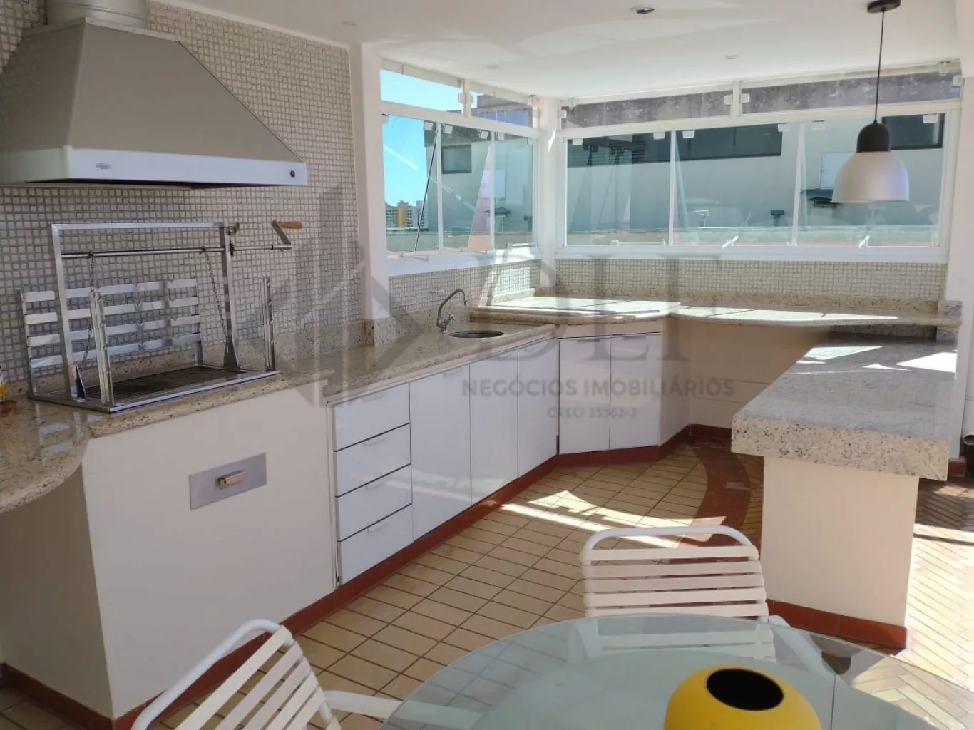 No andar superior o imóvel possui 1 sala ampla com 2 ambientes, área de lazer com churrasqueira, piscina, espaço gourmet, uma ampla sacada com uma vista maravilhosa e 3 vagas de garagem.