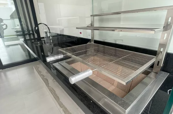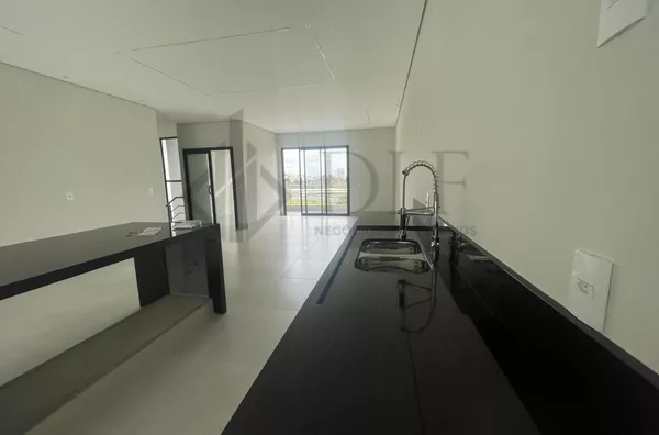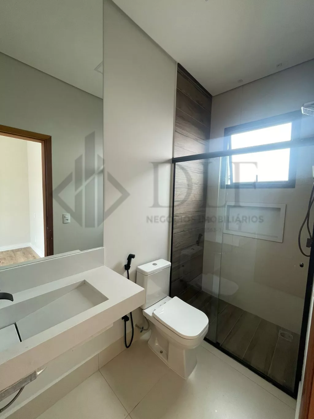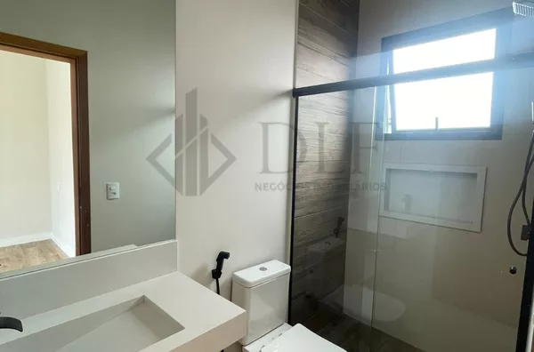Bancada em mármore branco com 2 cubas e ducha dupla, pontos de ar condicionados nas 3 suítes.