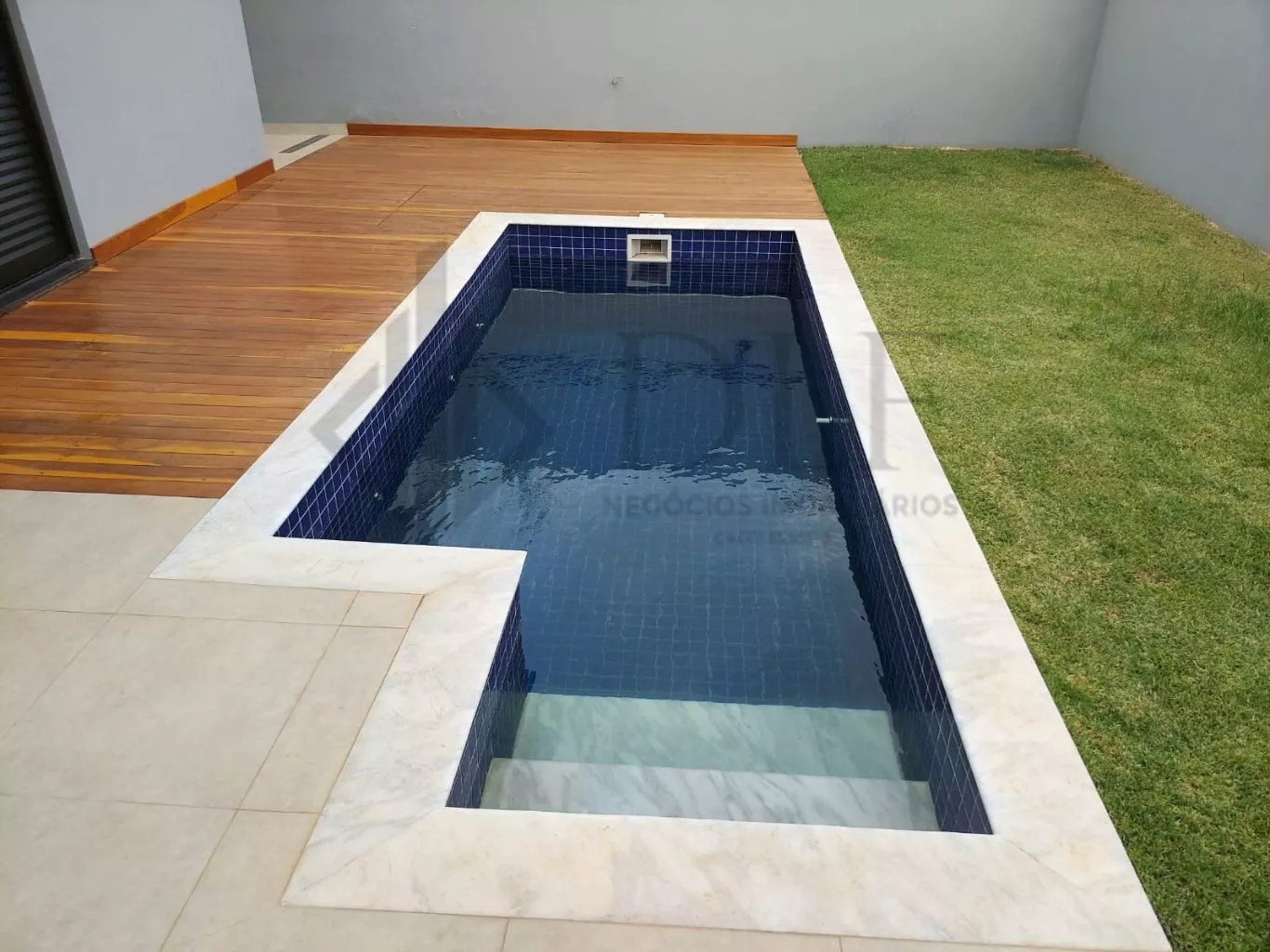 A casa possui área gourmet e piscina toda preparada para receber aquecimento.