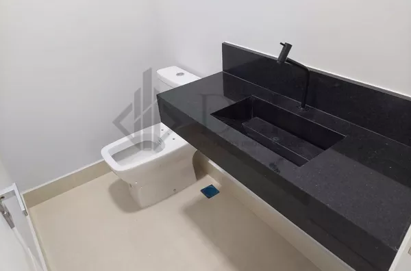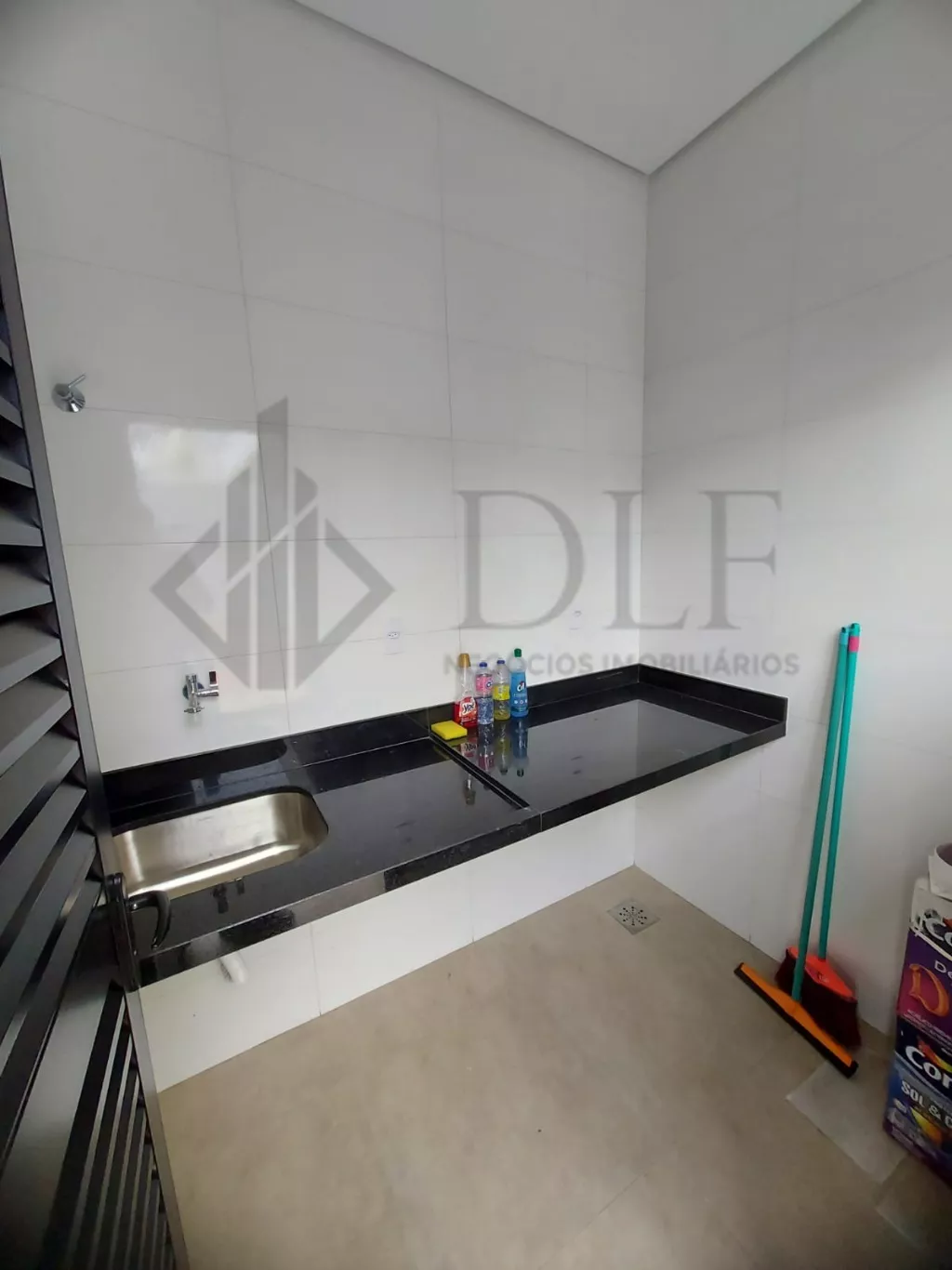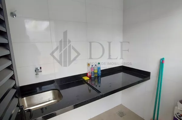 Sendo 3 dormitórios (todos suites), escritório, 5 banheiros, sala de estar, sala de jantar, cozinha, área de serviços e vagas para 2 ou 3 carros.