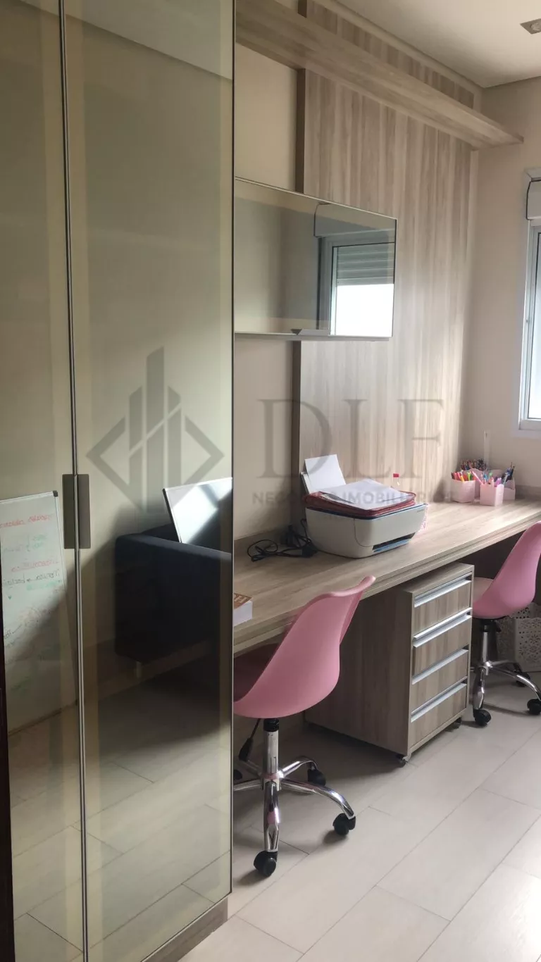 3 dormitórios com móveis planejados, sendo 1 a suite master com closet e banheira, 4 banheiros, sala de estar e sala jantar integradas, cozinha com móveis planejados, área de serviços. Área de lazer com churrasqueira gourmet e piscina.
