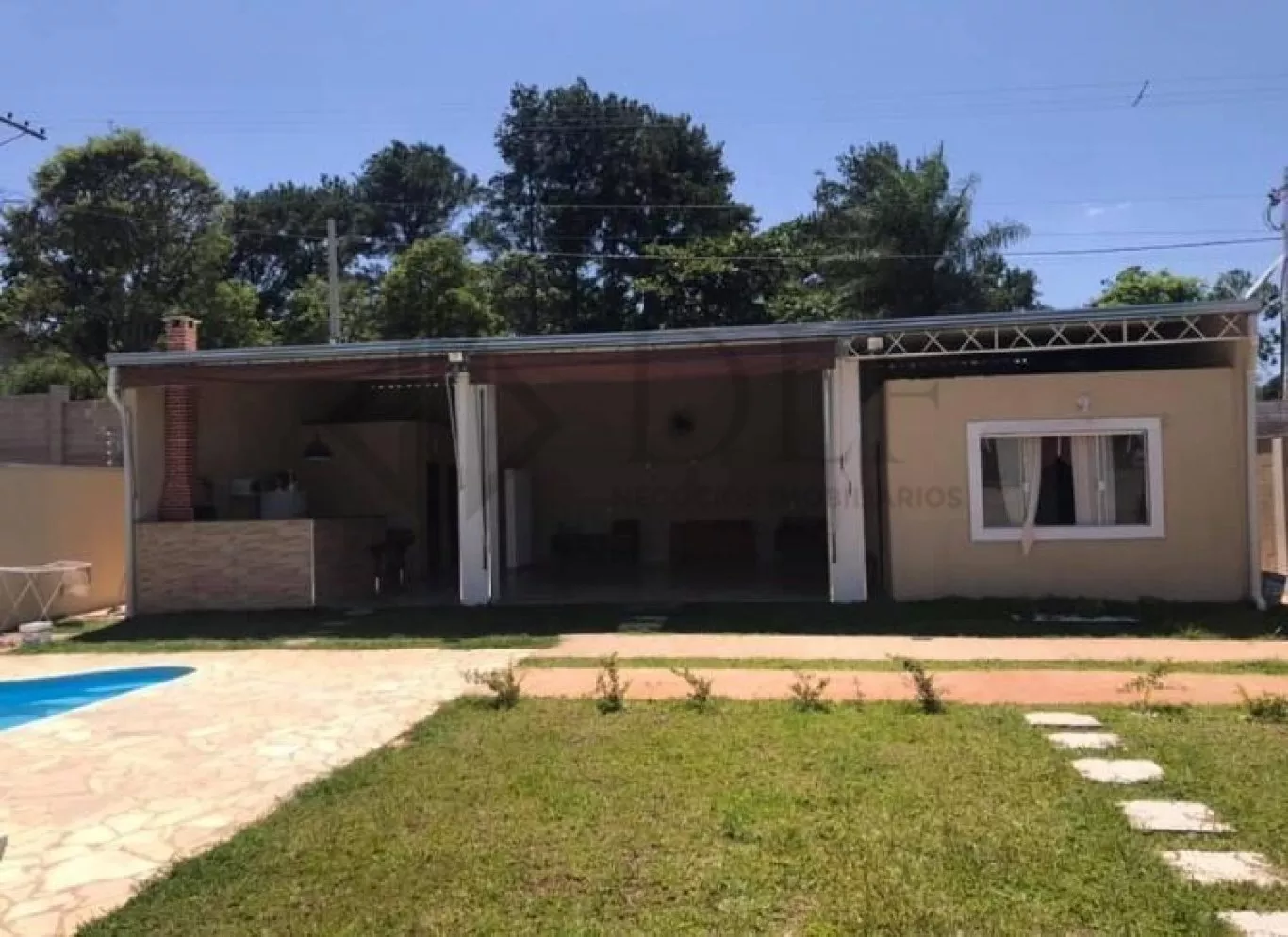 A chacara possui 1 dormitório sendo suite, sala de estar, área de lazer com churrasqueira, piscina, 2 banheiros para atender a área da piscina. Terreno com 500m2