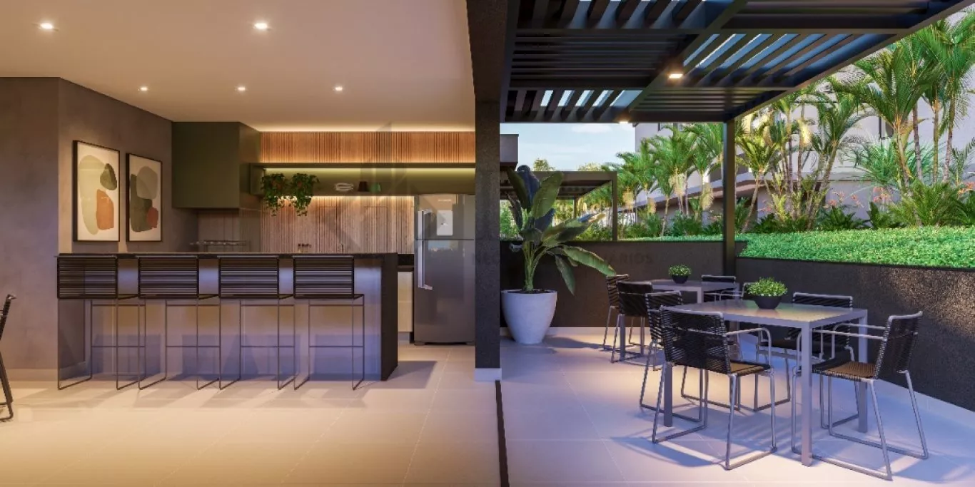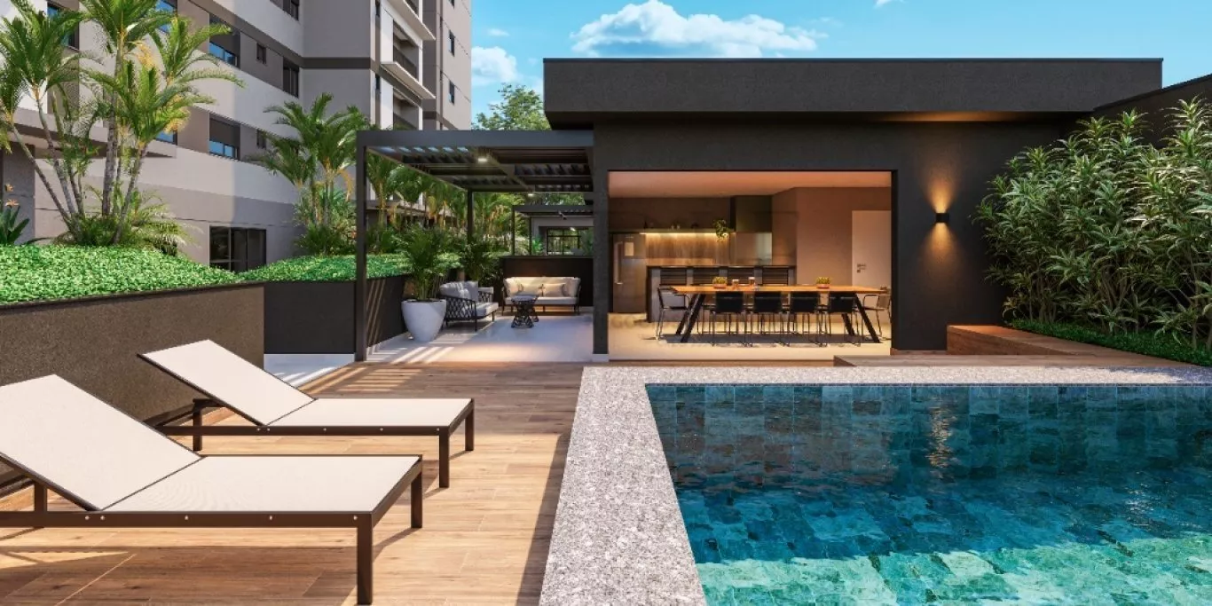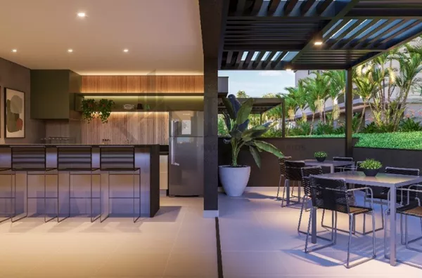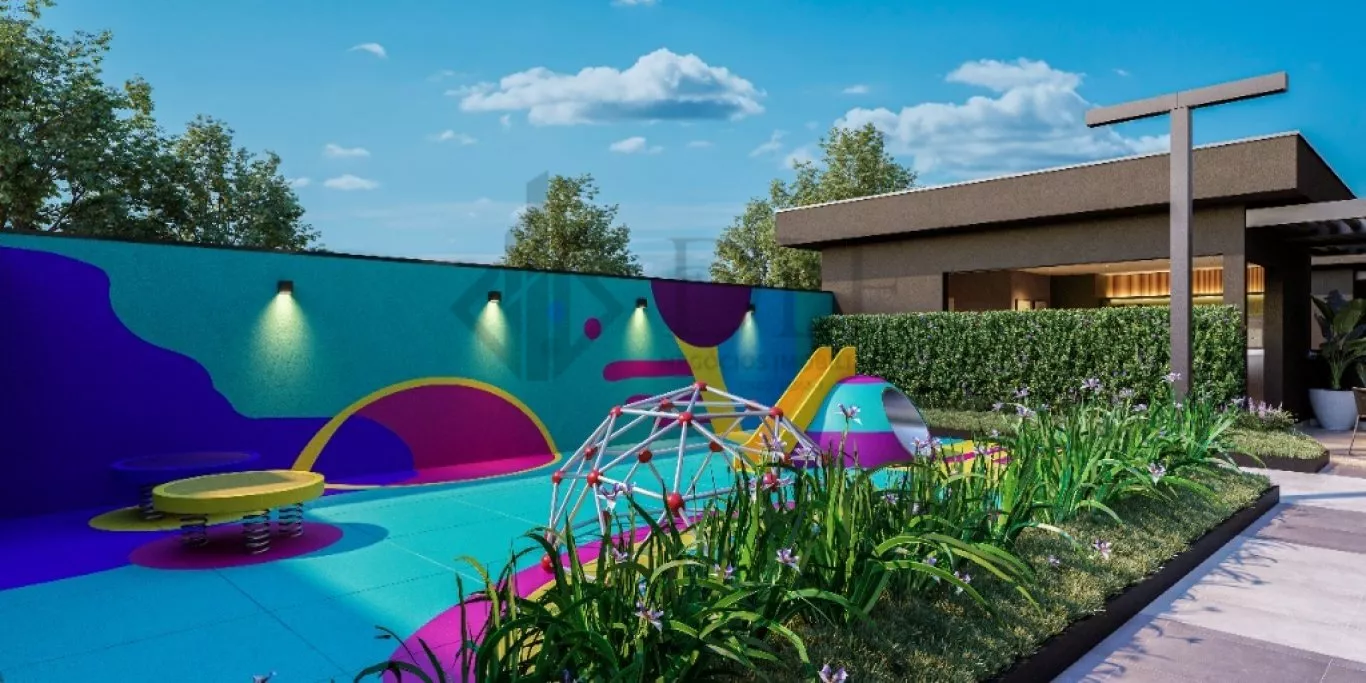 Condomínio com lazer completo guarita com lavabo, lobby, brinquedoteca, piscina adulto, piscina infantil, fitness, espaço festas, lounge, playground e churrasqueira.