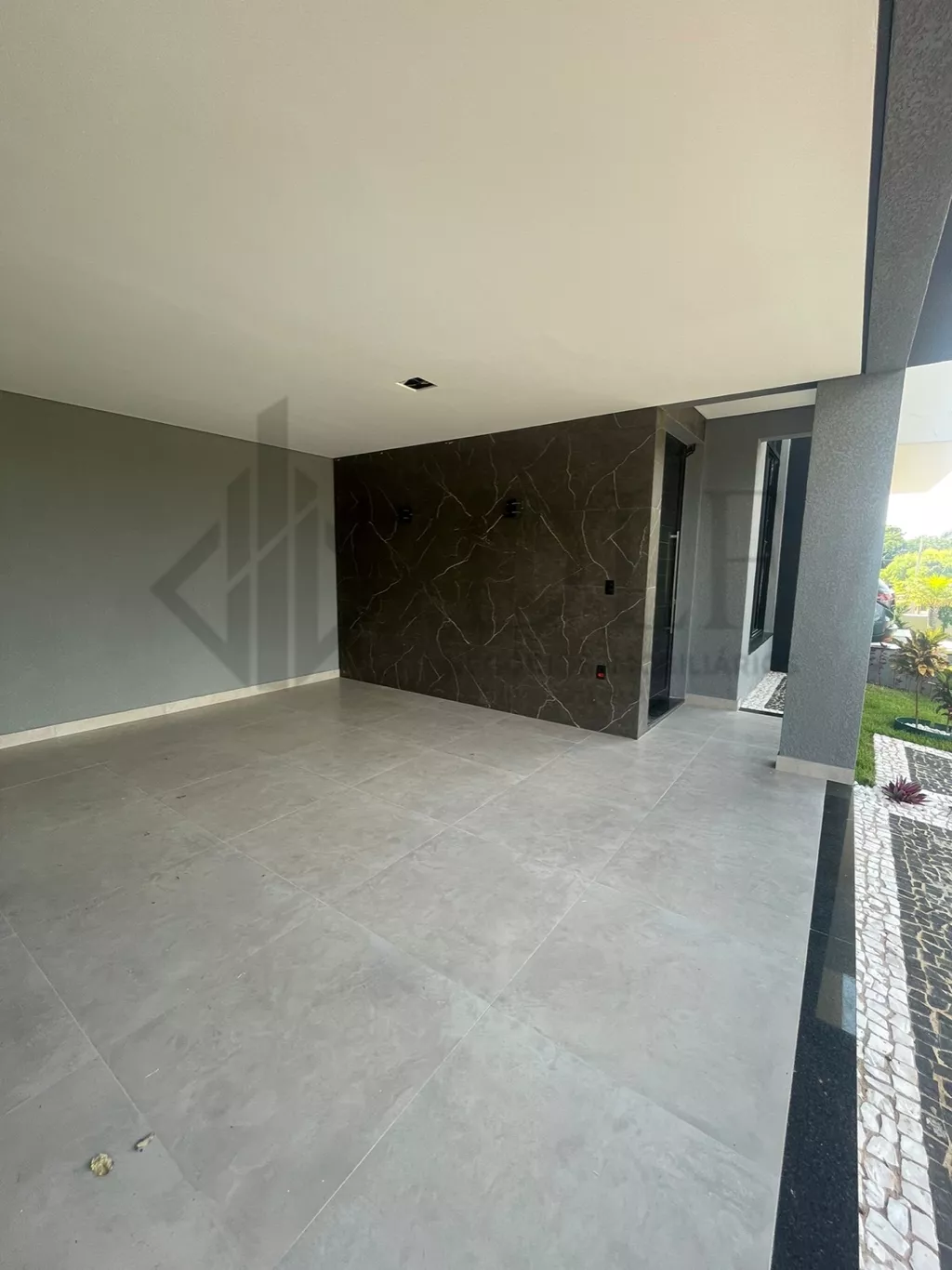 Todo o quintal com arandelas que dá um designer moderno ao ambiente, com 2 lindos jardins rico em paisagismo