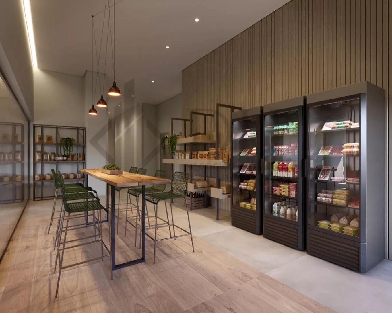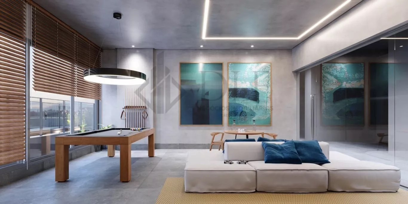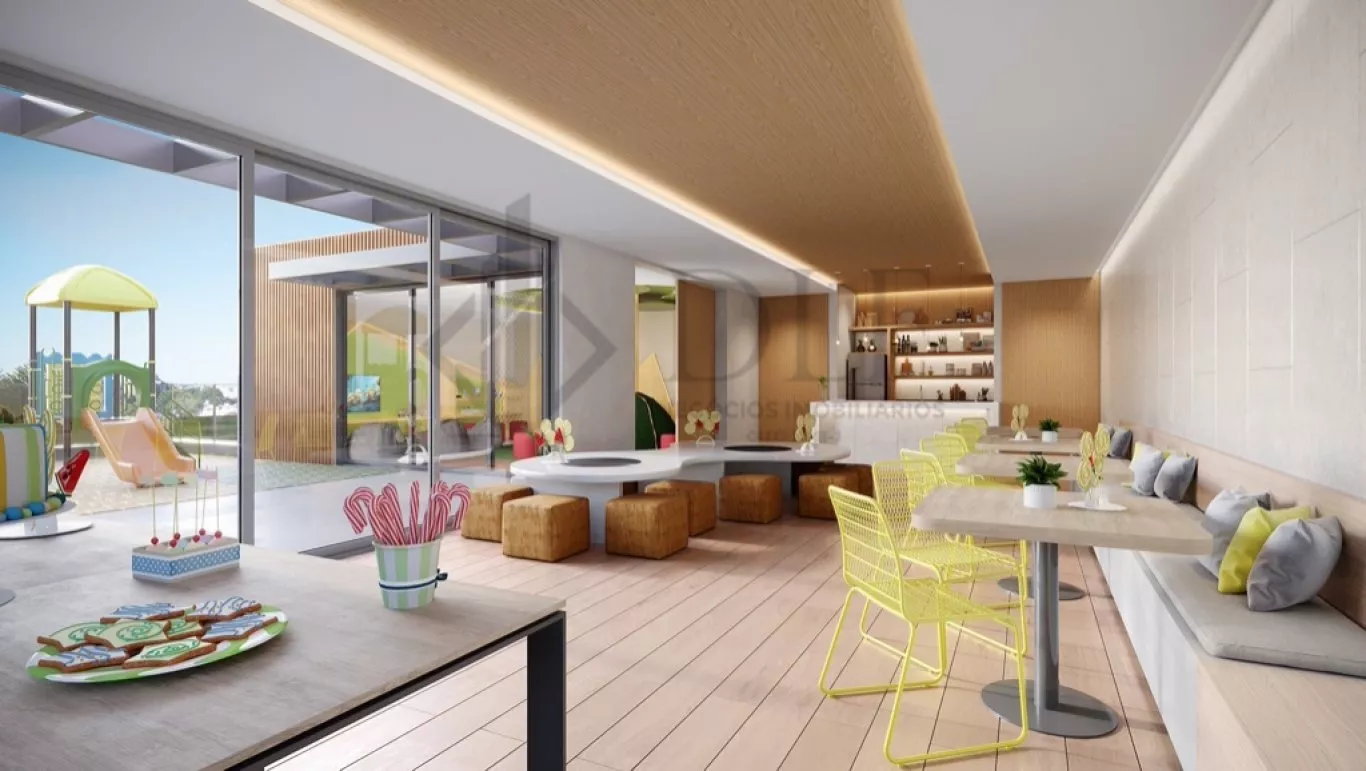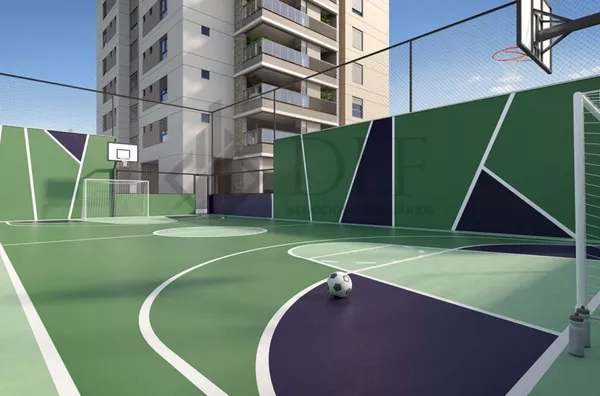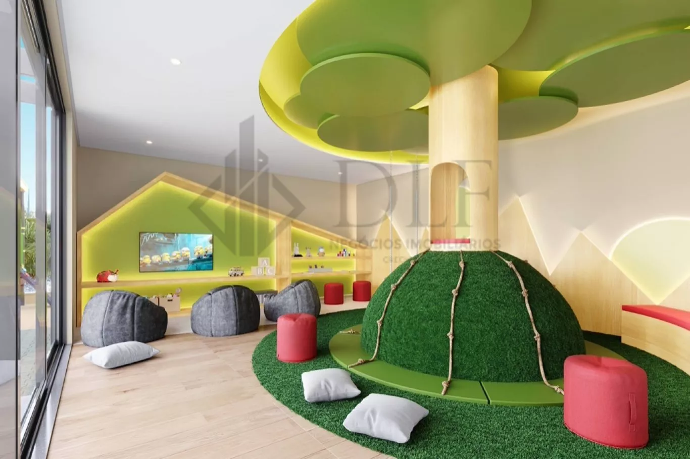 Excelente área de lazer com piscina com raia, espaço gourmet, quadra esportiva, fitness room/ao ar livre, playground, brinquedoteca, solário, deck molhado, mini market, churrasqueira gourmet, espaço games, salão de festas, coworking.