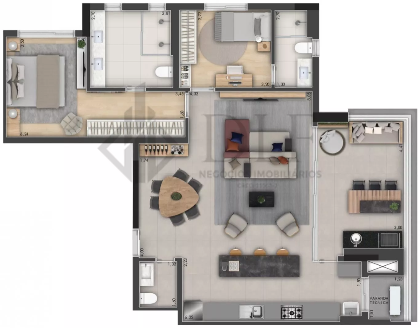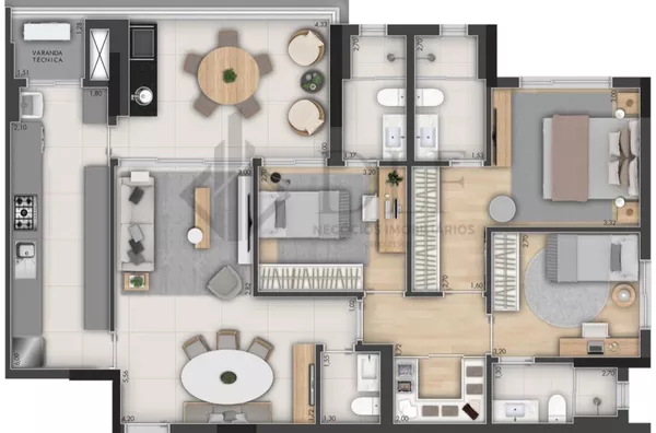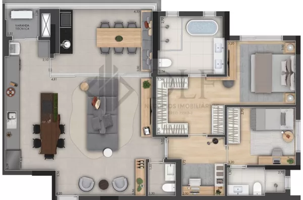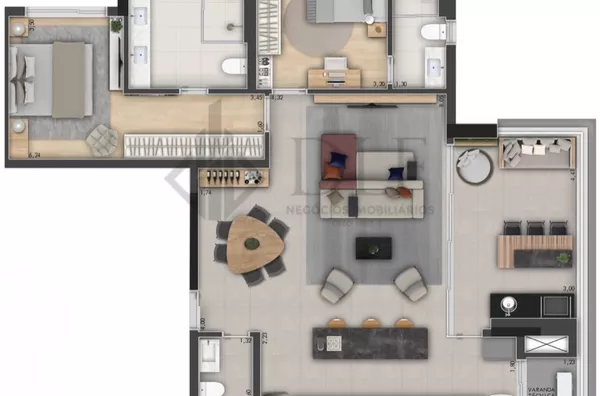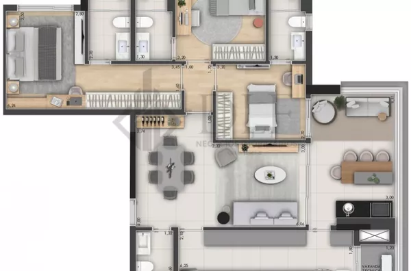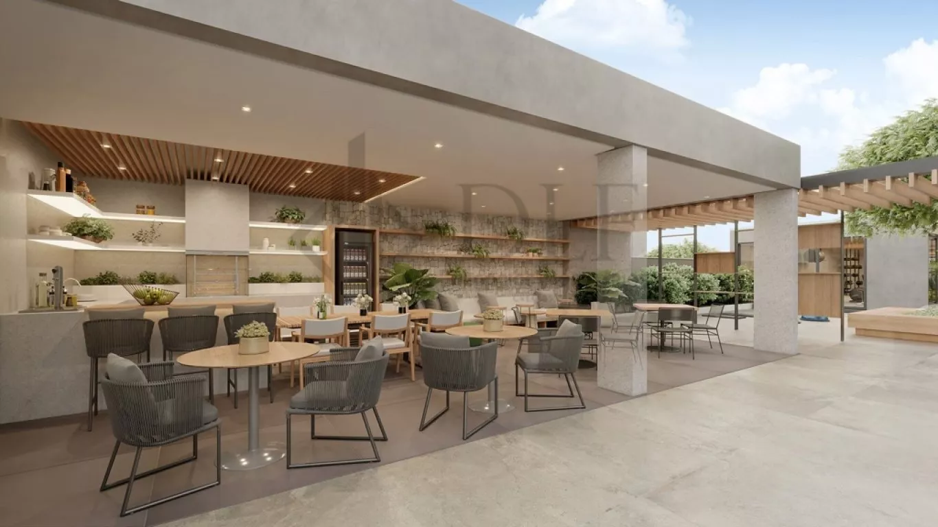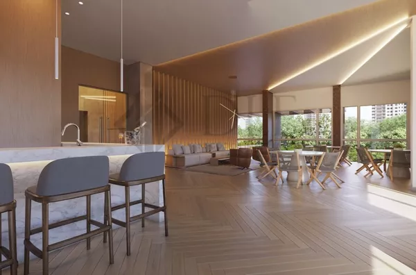 Excelente área de lazer com piscina com raia, espaço gourmet, quadra esportiva, fitness room/ao ar livre, playground, brinquedoteca, solário, deck molhado, mini market, churrasqueira gourmet, espaço games, salão de festas, coworking.