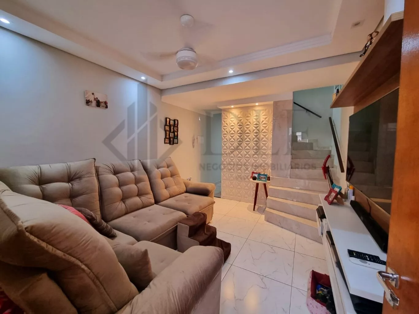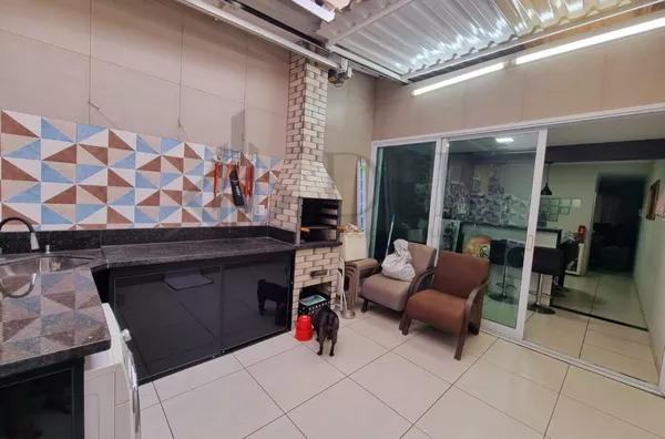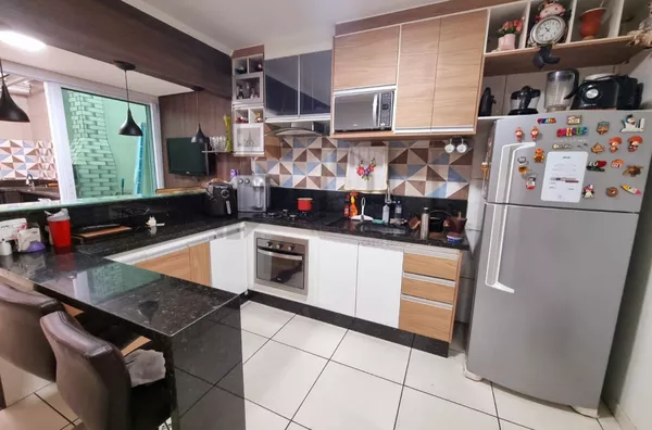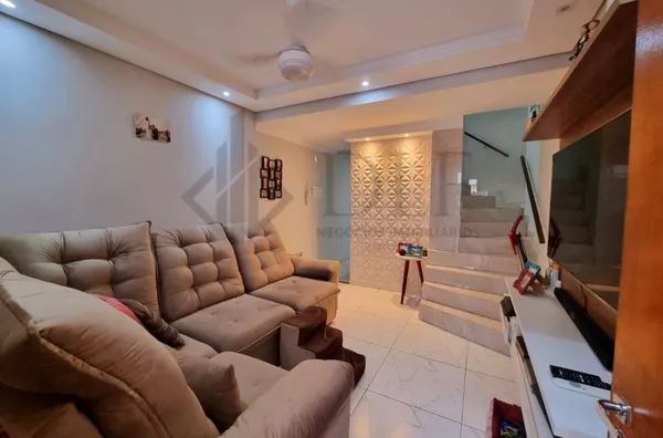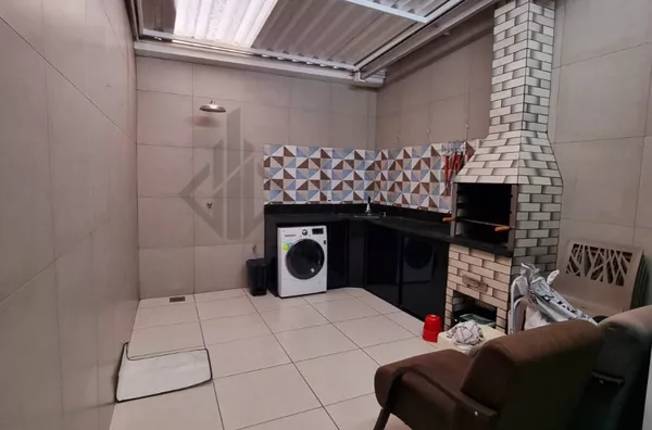 Com 2 dormitórios com armários planejados, ar condicionado no quarto de casal, sala com painel planejado, cozinha planejada, quintal com espaço gourmet e lavanderia toda planejada, lavabo na parte de baixo do sobrado planejado, banheiro social na parte de cima planejado.