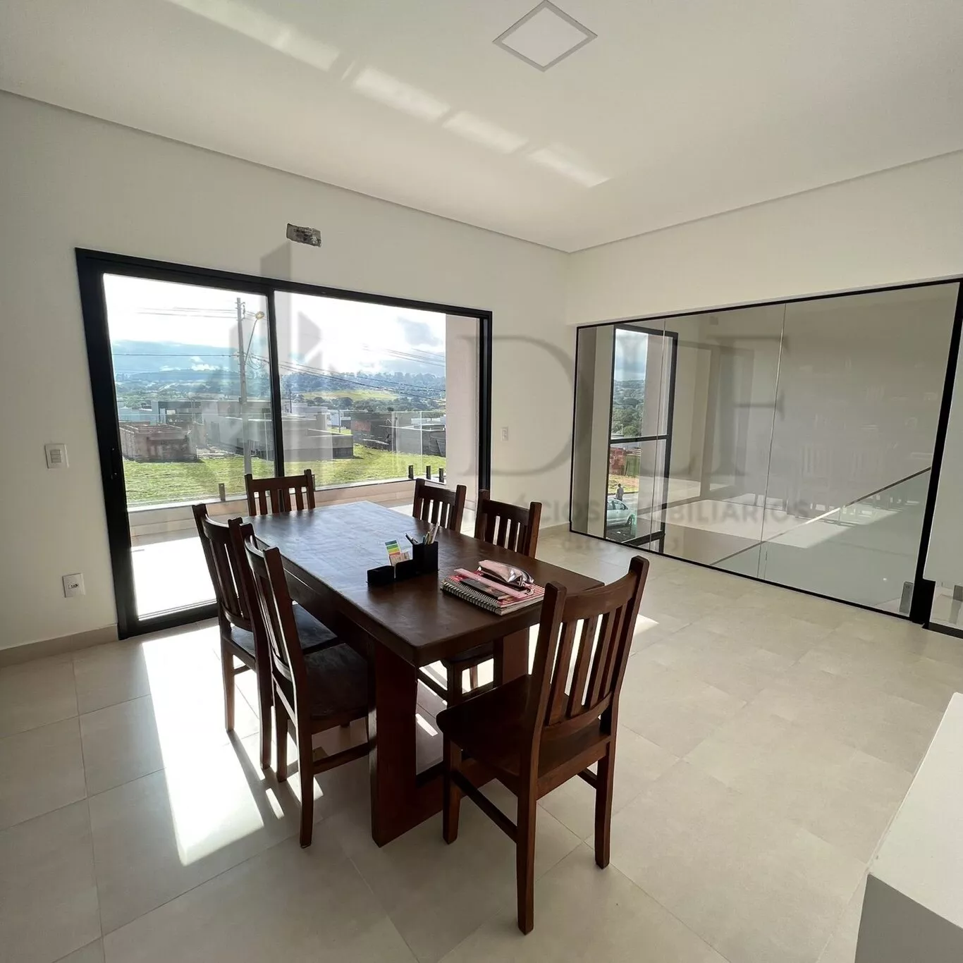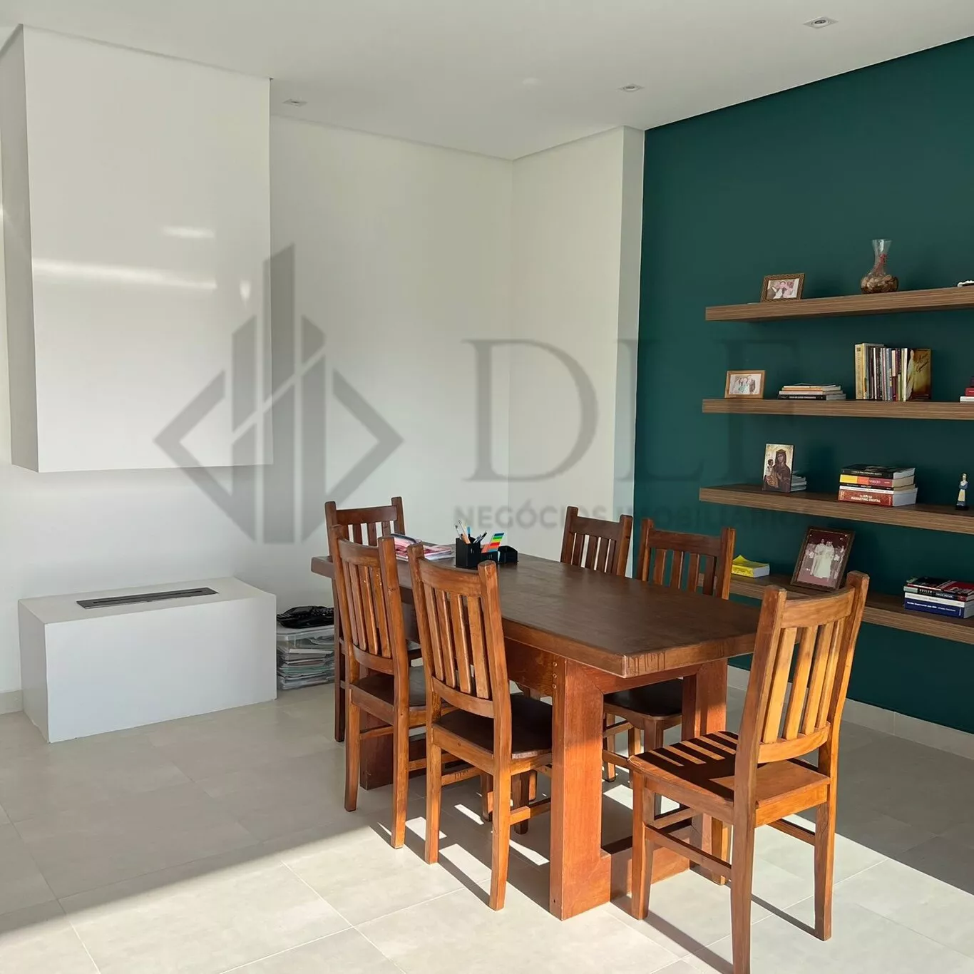 Mezanino que pode ser usado como escritório, biblioteca. sala de TV com lareira ecológica.