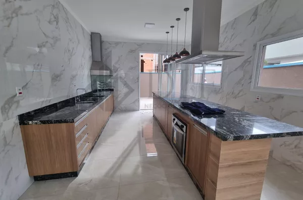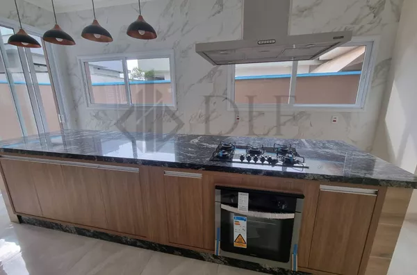 Excelente casa térrea sendo 3 quartos e 1 suíte, banheiro social, living para 2 ambientes, cozinha planejada com ilha, cooktop e forno, área gourmet com churrasqueira, área de serviço, quintal, garagem para 4 veículos.