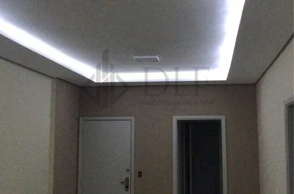 O imóvel tem 3 dormitórios, 2 banheiros, ampla sala para 2 ambientes, com piso em porcelanato e sanca na sala, com iluminação indireta e direta.