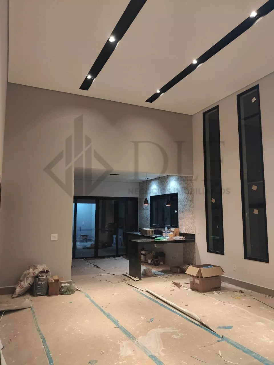 Possui 3 dormitórios, todos com janelas tipo venezianas com controle remoto e tela mosquiteiro, suíte com closet amplo e banheiro com pia dupla, sala ampla com pé direito de 4,5mts, toda integrada com a cozinha e área gourmet.