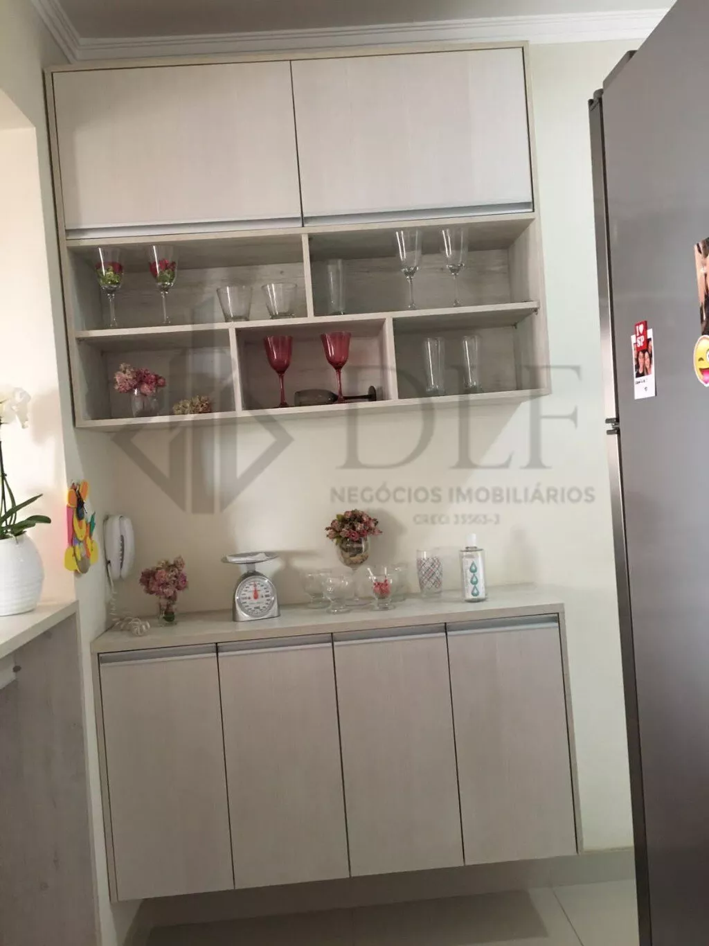 Moderno apartamento de 3 quartos, sendo `1 suite, sala ampla, esses cômodos com piso em carpete de madeira, cozinha, área de serviço e banheiros com piso em porcelanato e armários. 2 vagas de garagem próprias em gaveta.
