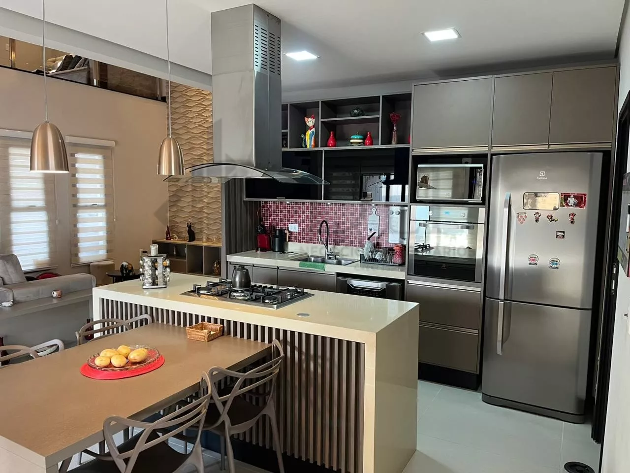 A Casa contém 3 dormitórios sendo 2 suítes e outro revertido em escritório, com possibilidades de uma 3ª suíte, cozinha e sala estilo americano, sala de Tv, living, área gourmet, sacadas frente e trás, closed, 4 vagas com 2 cobertas e lazer completo com piscina, salão de festas, campo de futebol e academia.