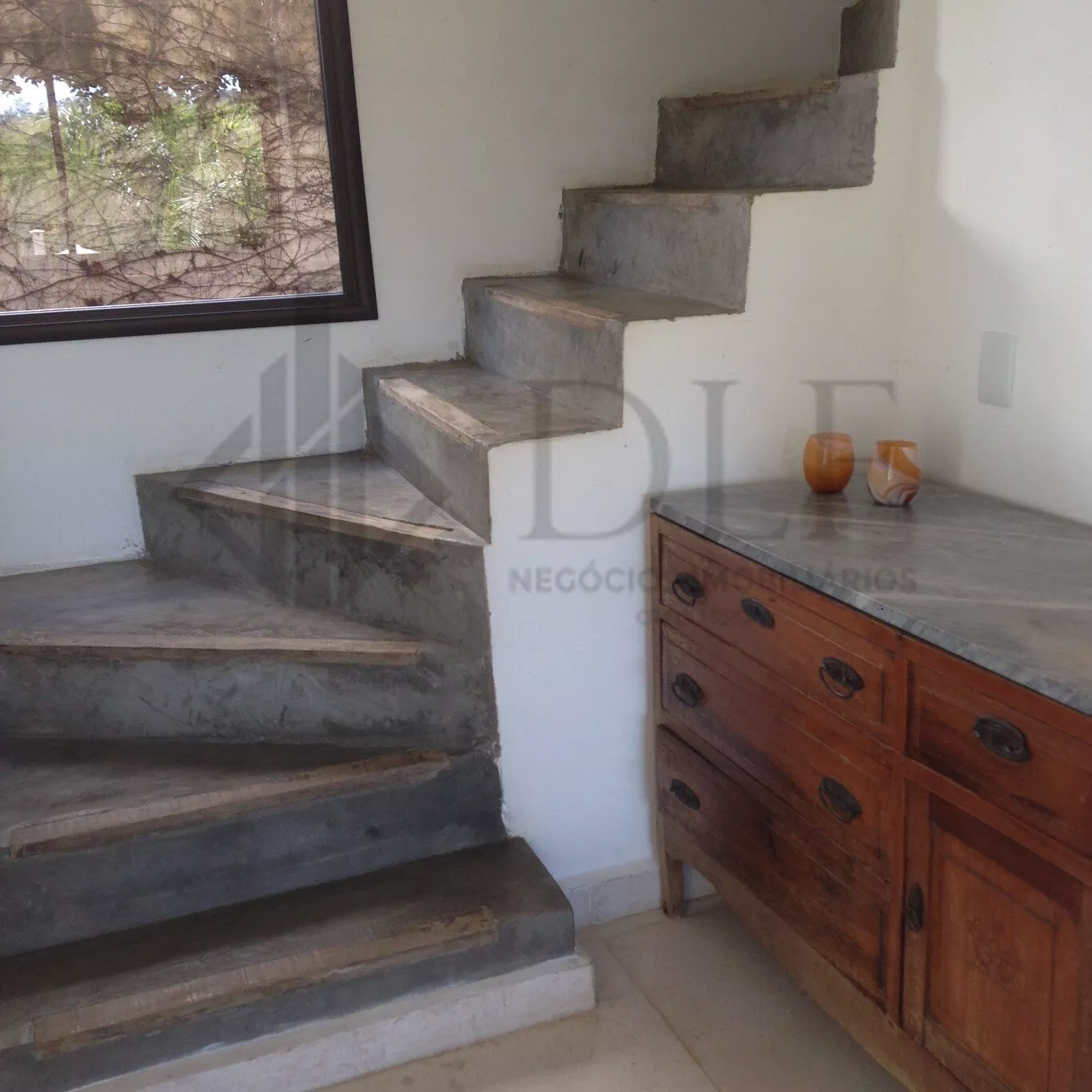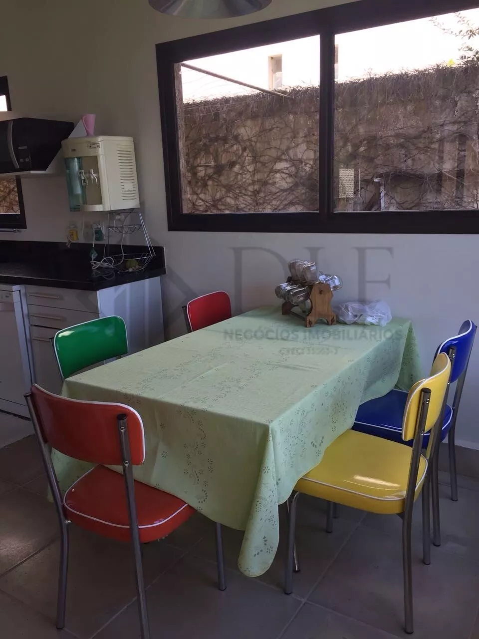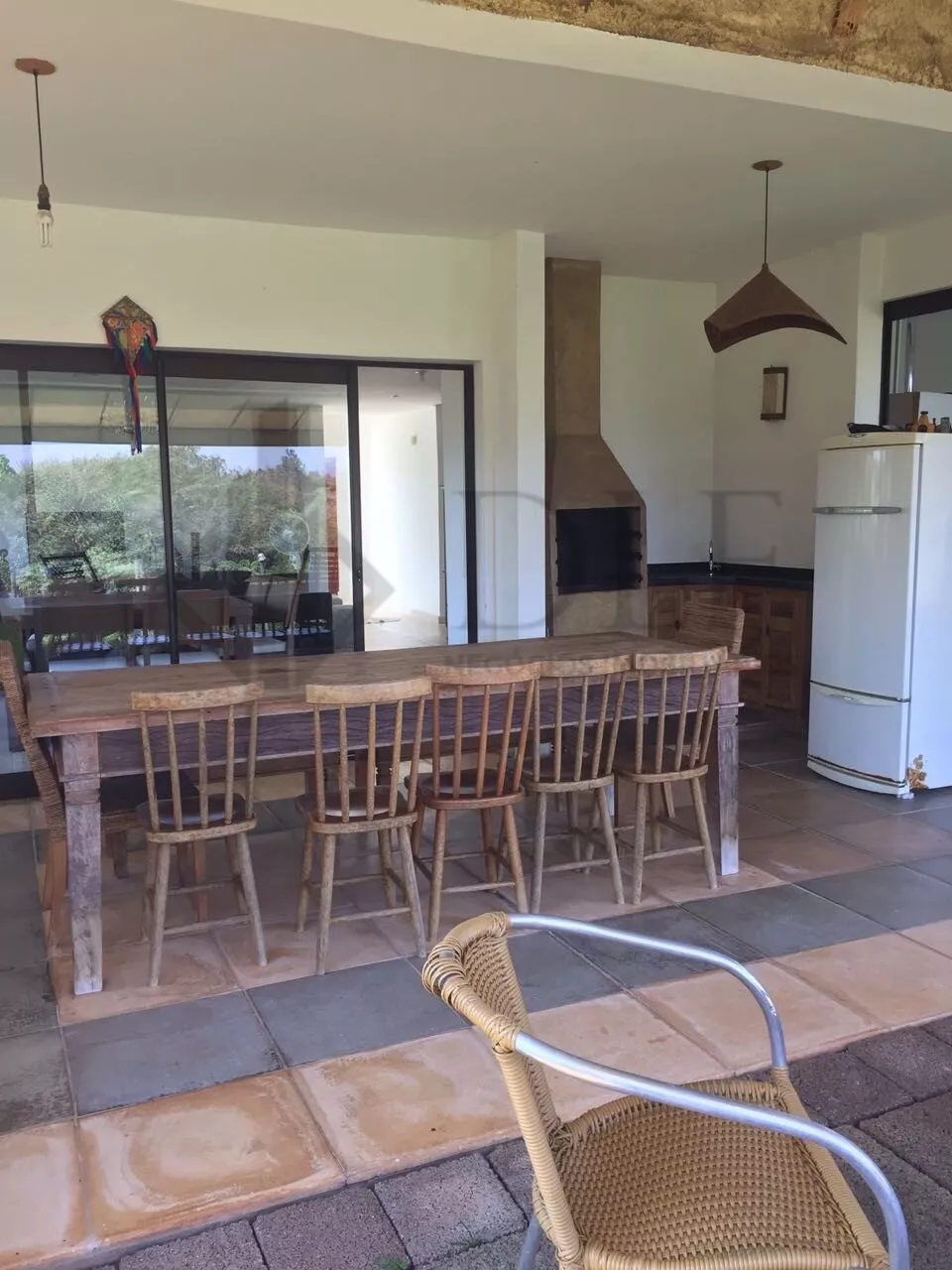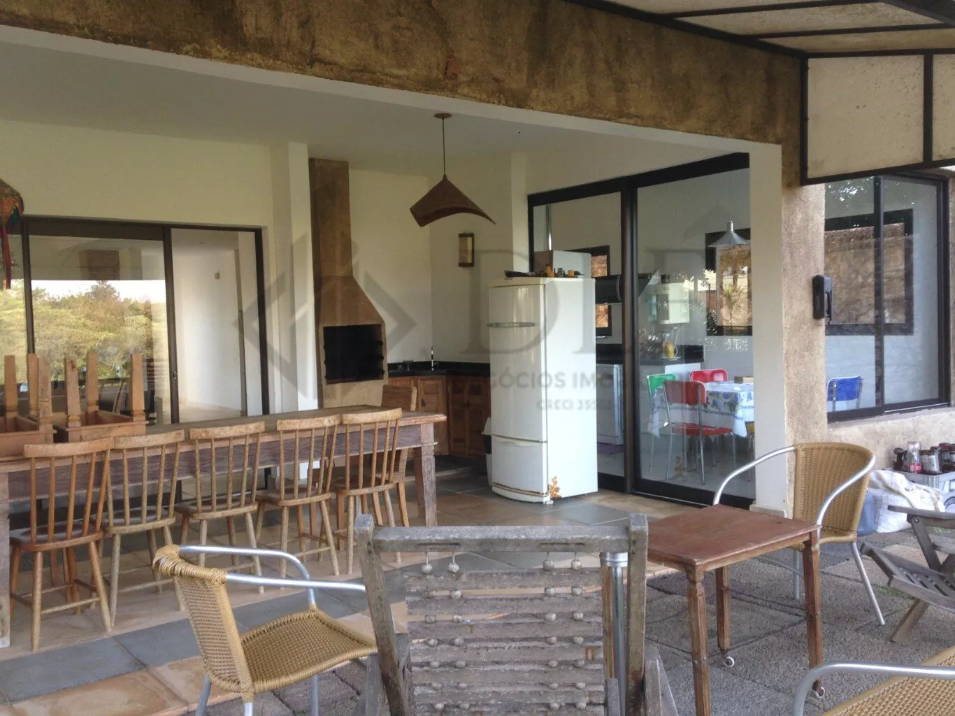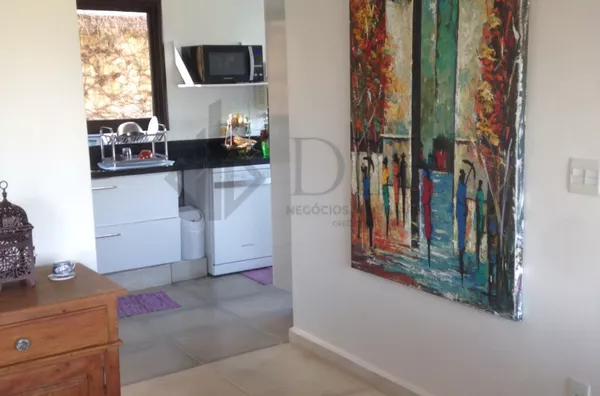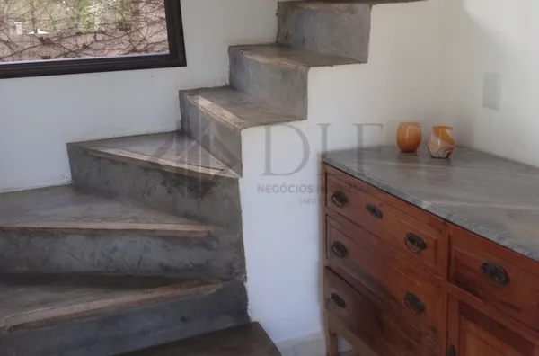 No Térreo: Duas salas integradas, piso cerâmico medindo 1x1m, sala com lareira, vidros amplos, aproveitando bem a luz solar. Quarto/escritório com Banheiro completo. Cozinha com fogão cooktop, coifa, armários planejados, despensa e pequena copa.