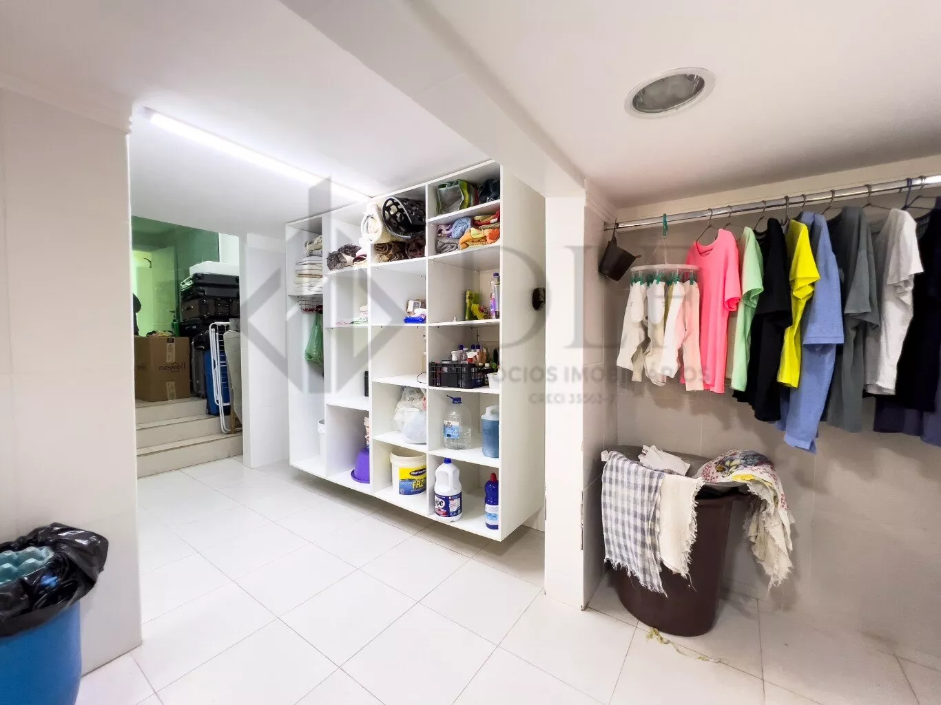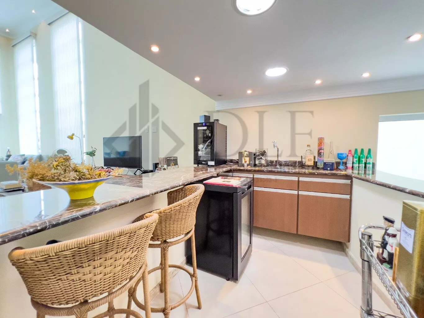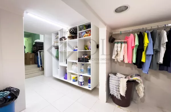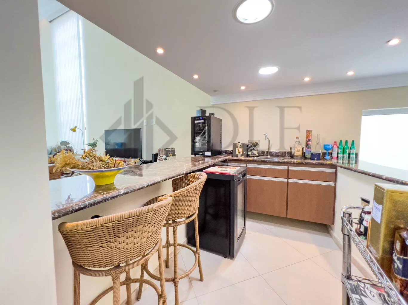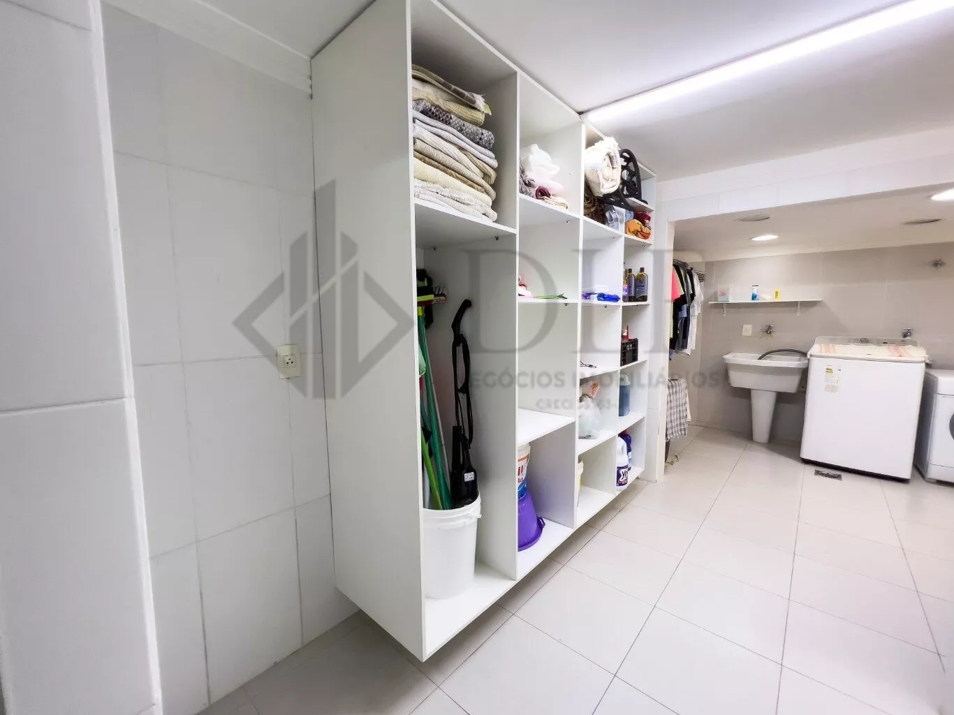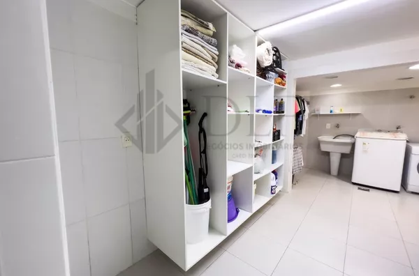 A cozinha, ampla e confortável, é planejada e com excelentes armários. A área de serviço é espaçosa. Há banheiro para empregados.
